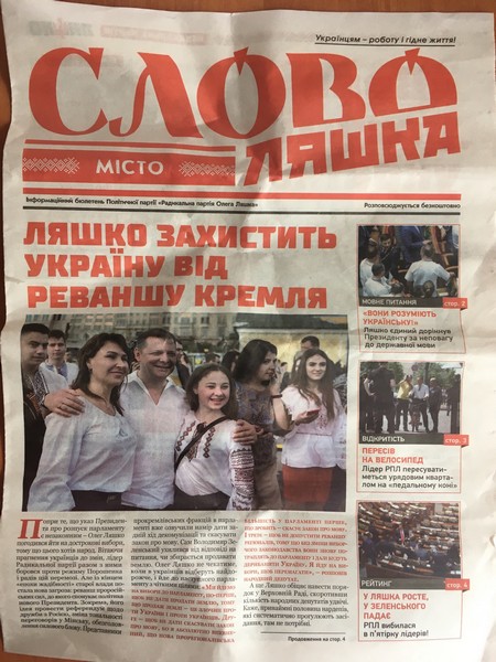 Поширення газет без вказання передбачених законом відомостей спостерігачі ОПОРИ зафіксували на проспекті Василя Мойсея у Луцьку 22 та 24 червня, а також 25 червня у місті Володимир-Волинський. Із намету Радикальної партії Олега Ляшка особи, одягнені у футболки із партійною символікою, поширювали інформаційний бюлетень «Слово Ляшка».