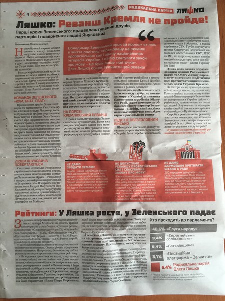 Інформаційний бюлетень «Слово Ляшка» не містить жодних відомостей про замовника, тираж, установу, що здійснила друк, відповідальну за друк особу. У газеті розміщені матеріали на користь лідера партії Олега Ляшка, а також соціологічне дослідження на користь партії.
