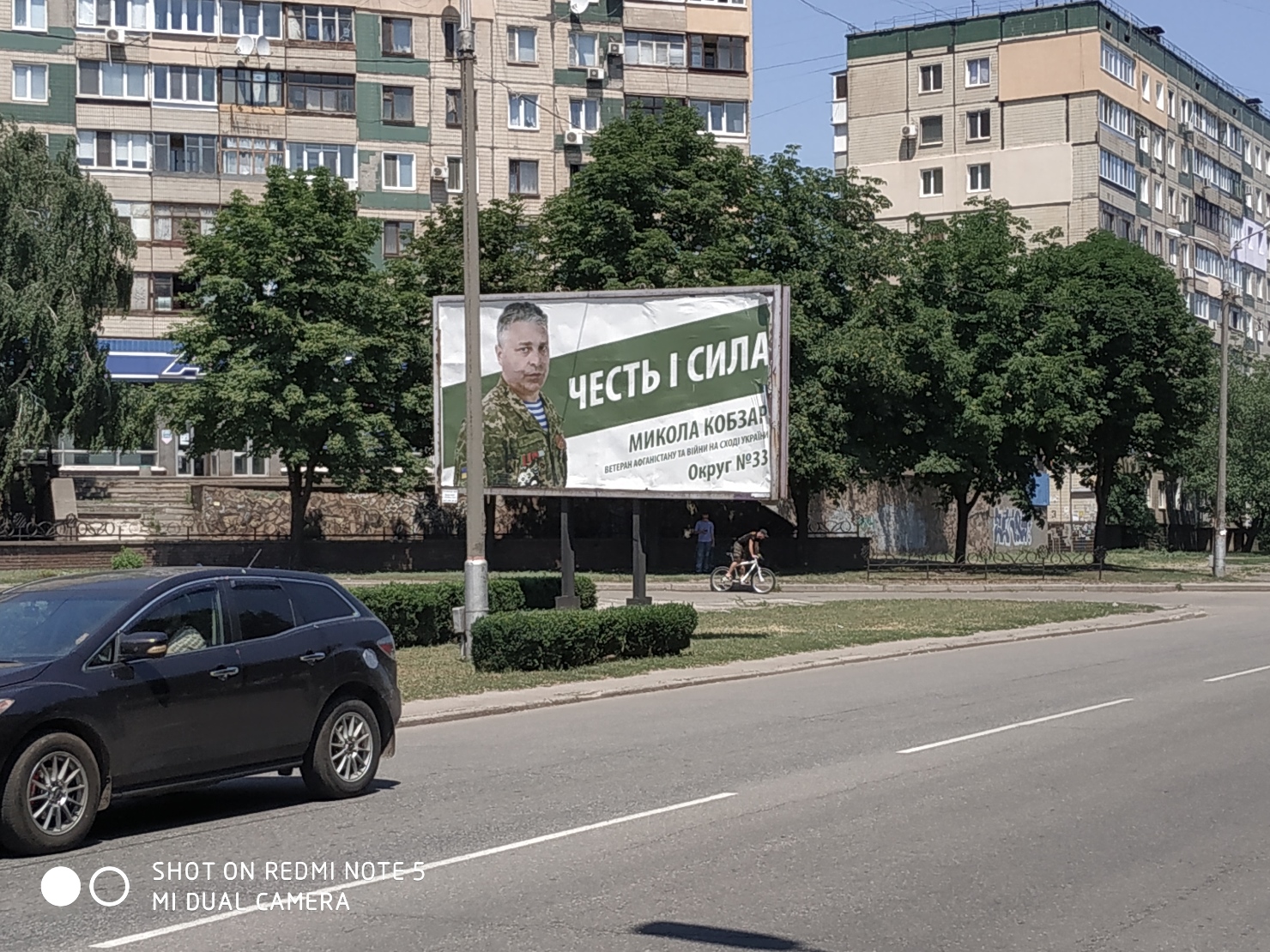 У Кривому Розі 25 червня спостерігачка виявила білборд з написом «Сила і честь. Микола Кобзар. Ветеран Афганістану та війни на сході України. Округ №33» без вихідних даних. Білборд з написом «Захистимо європейське майбутнє України. Європейська Солідарність» також розміщено без вихідних даних. За обома фактами розміщення політичної реклами без вихідних даних після офіційної реєстрації суб’єктів виборчого процесу спостерігачка звернулась до правоохоронців.