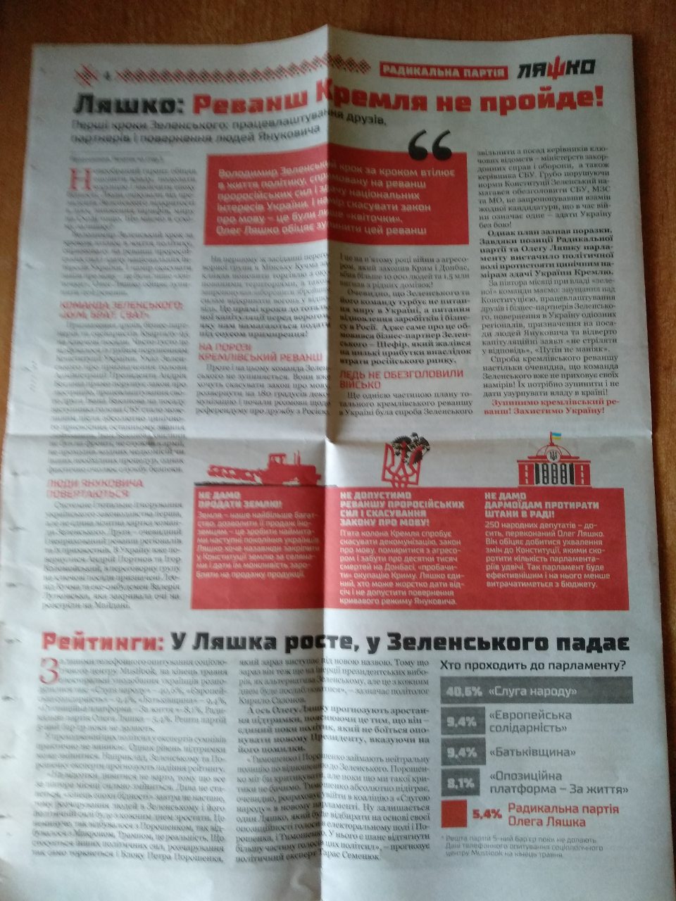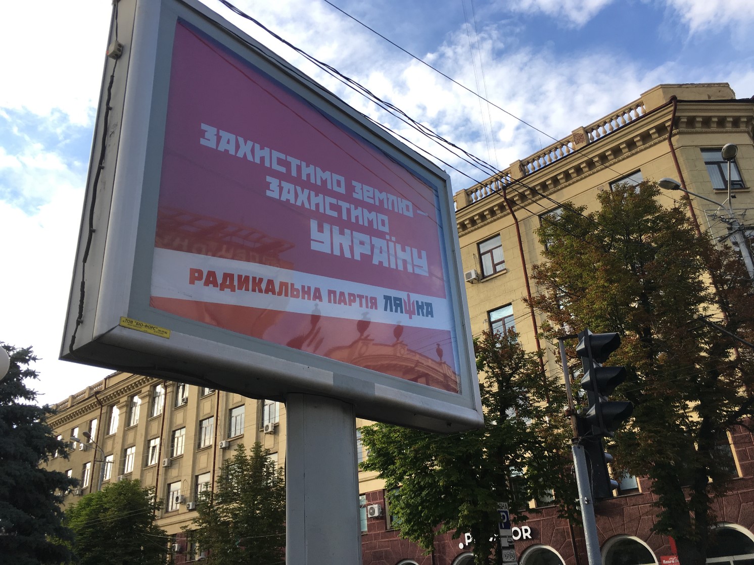 В цей же день, 22 червня спостерігачами ОПОРИ було зафіксовано білборд без вихідних даних з написом «Захистимо землю – захистимо Україну. Радикальна партія Ляшка».