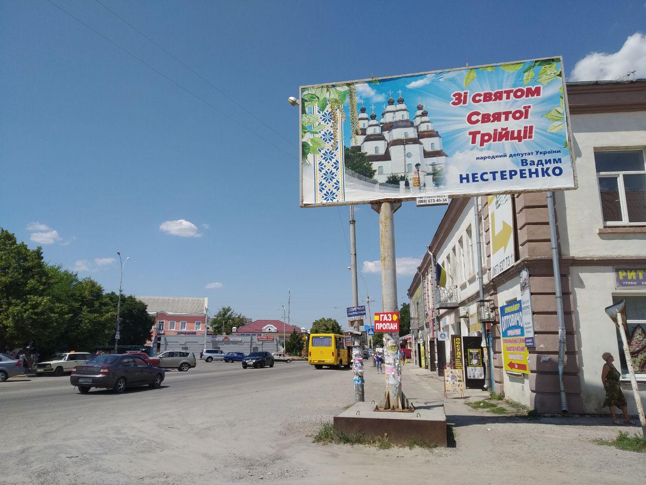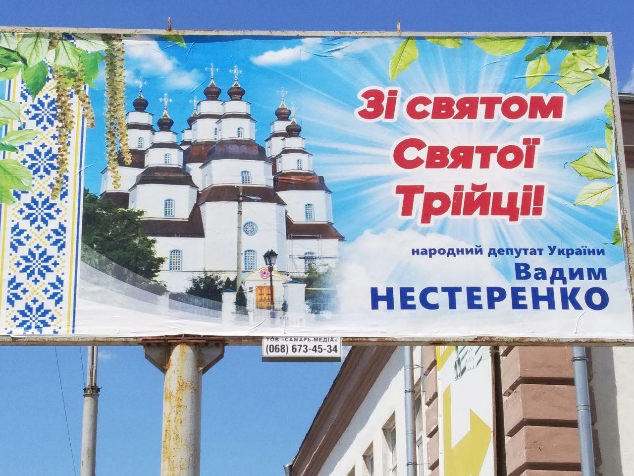 22 червня спостерігачка ОПОРИ зафіксувала в місті Новомосковськ білборд без зазначених вихідних даних з написом «Зі святом святої Трійці. Народний депутат України Вадим Нестеренко». Центральна виборча комісія зареєструвала Вадима Нестеренка кандидатом у народні депутати 20 червня 2019 року. За даним фактом спостерігачка звернулась із заявою до правоохоронних органів.