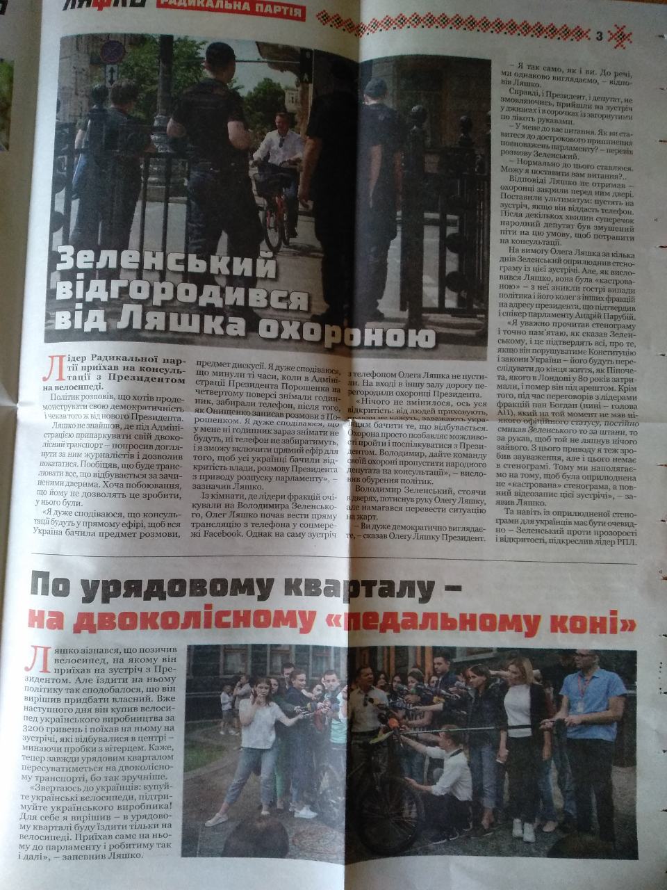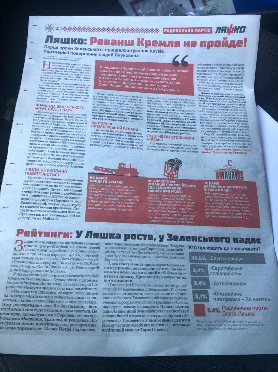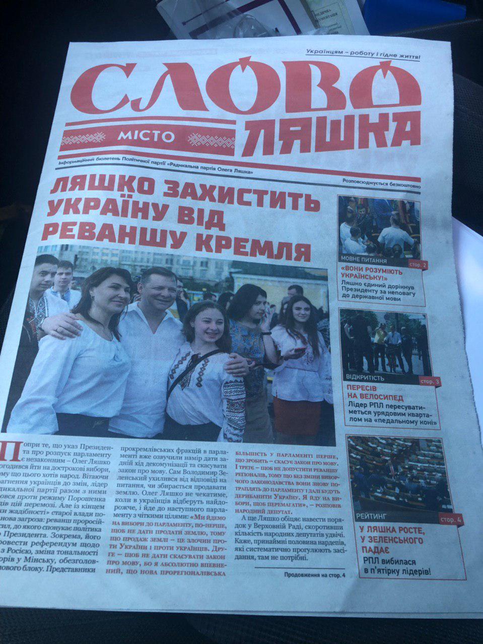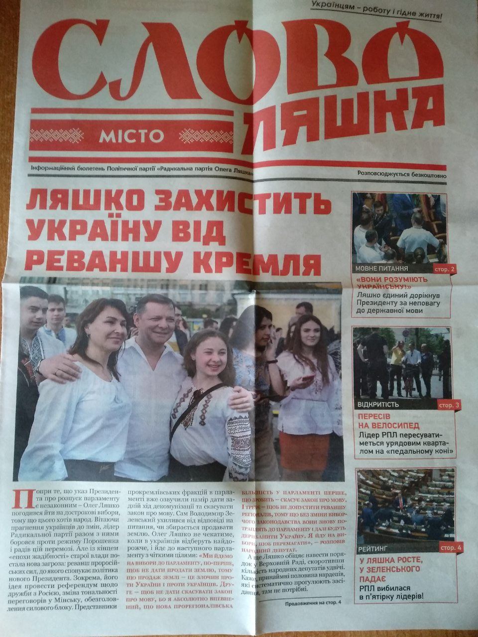 25 червня в місті Апостолове Дніпропетровської області (37 виборчий округ) спостерігачі ОПОРИ виявили агітаційний намет з написом «Ляшко». В наметі двоє чоловіків розповсюджували інформаційний бюлетень політичної партії Радикальна партія Олега Ляшка «Слово Ляшка». Отримавши екземпляр видання, спостерігачі звернули увагу на відсутність вихідних даних на сторінках газети. Тож, спостерігач ОПОРИ звернувся до правоохоронних органів щодо ймовірного порушення виборчого законодавства.