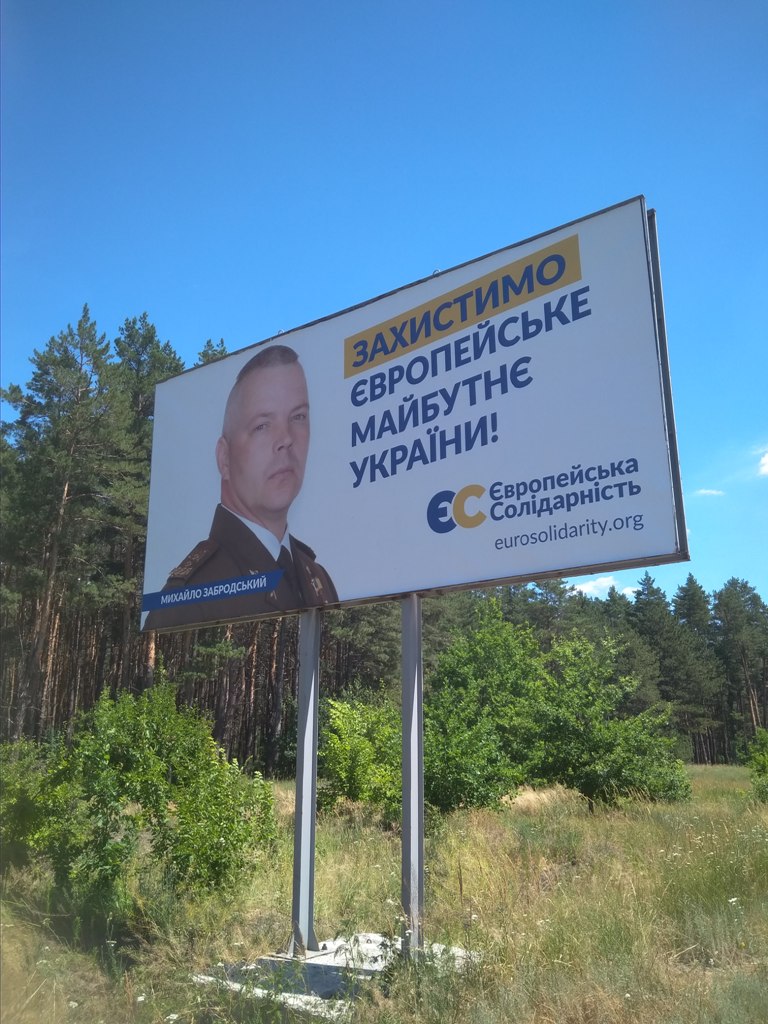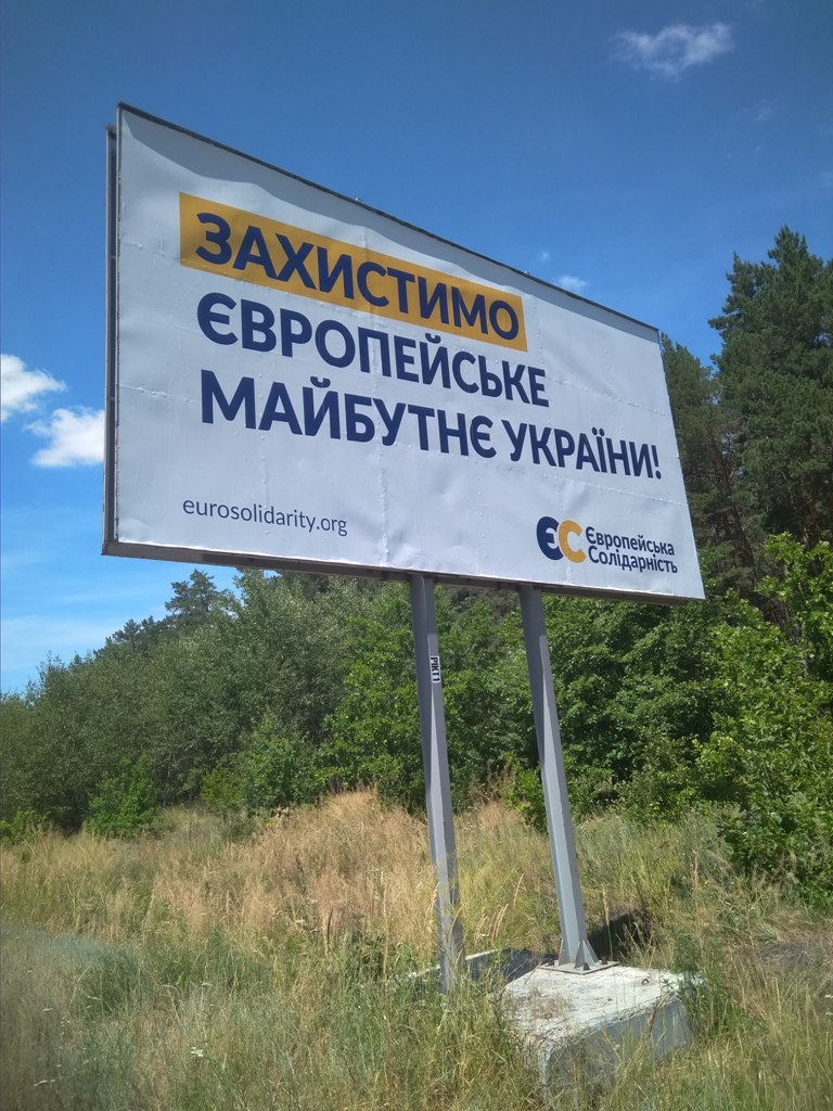 На виїзді з Нових Санжар розміщено два борди з агітацією на користь «Європейської солідарності», котрі також не містять вихідних даних.