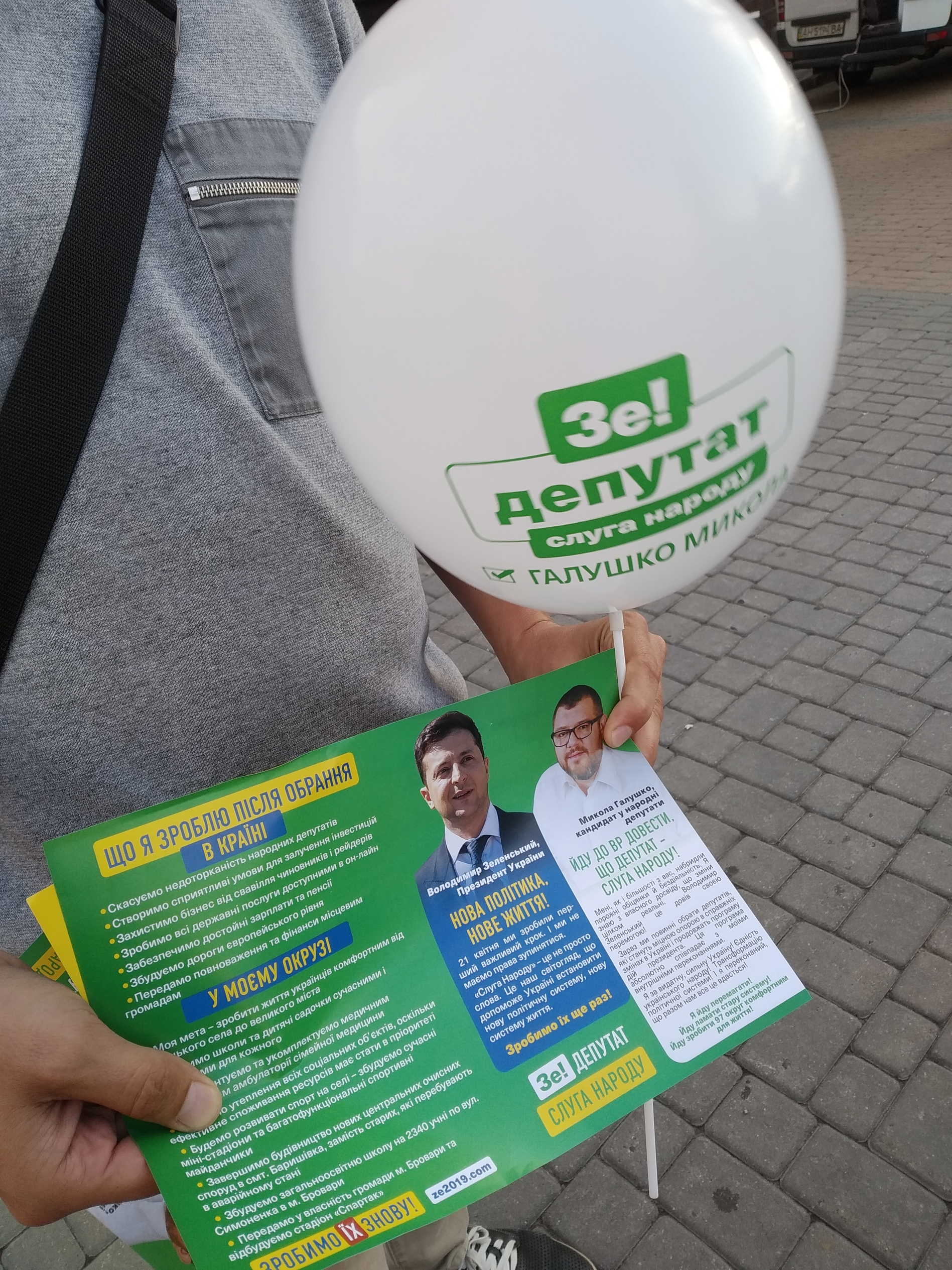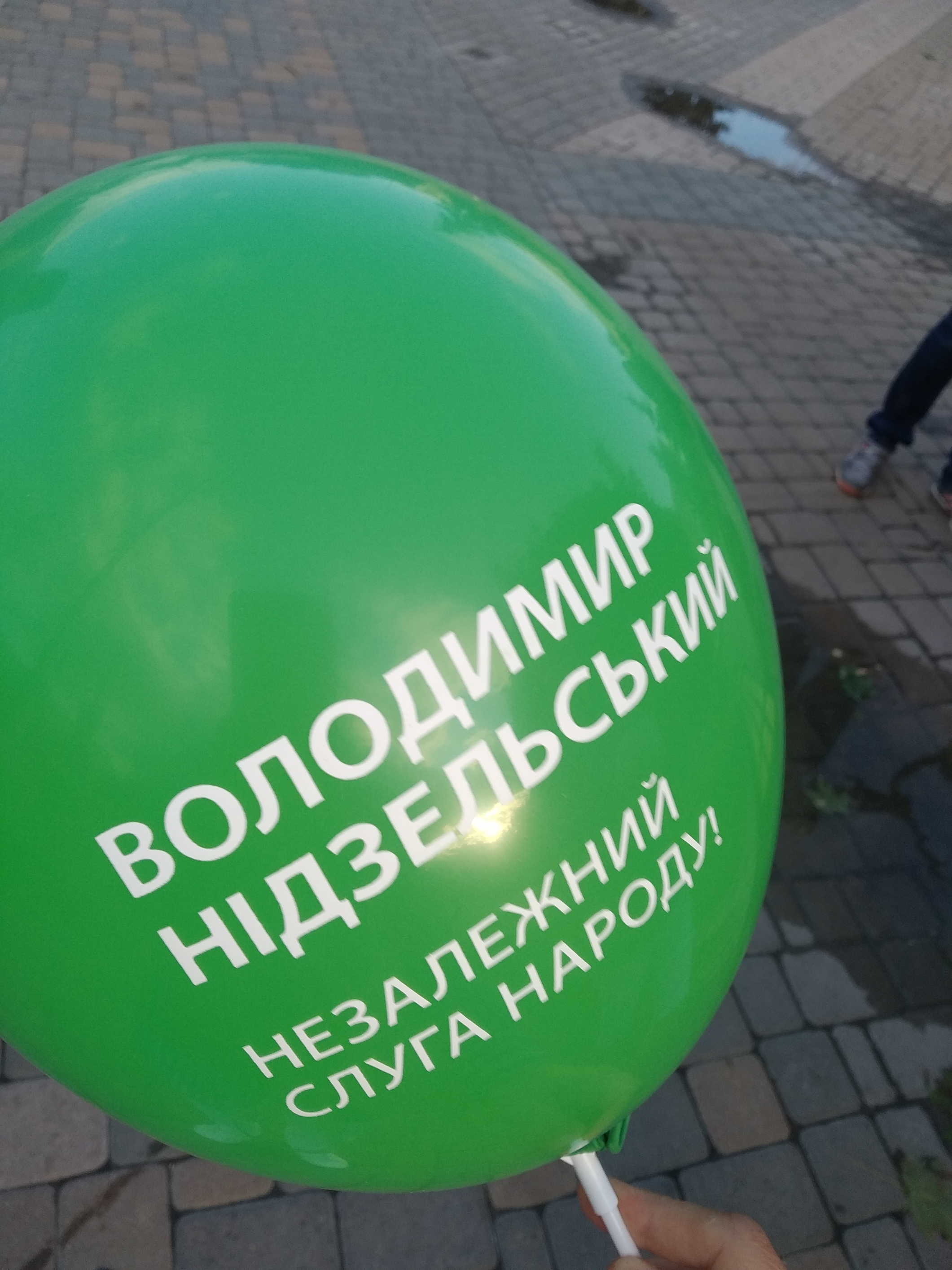 Разом з тим, як зазначила спостерігачка ОПОРИ, після того, як згорнули  намети Володимира Нідзельського, на площу, де відбувався концерт, прийшла делегація із близько 20 людей із символікою іншого кандидата, Миколи Галушка, зареєстрованого 25 червня від політичної партії  «СЛУГА НАРОДУ».  Вони також роздавали кульки зеленого та білого кольору, але вже з іншими написами – «Зе! депутат слуга народу Галушко Микола», розповсюджували агітаційні листівки на користь кандидата з його передвиборною програмою.