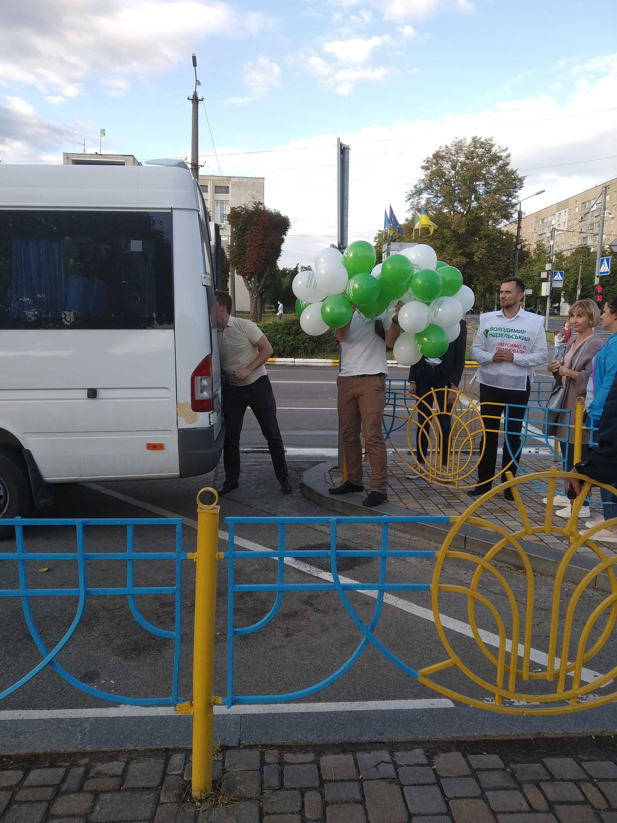 Біля майдану Свободи зранку і до вечора були припарковані близько 5 мікроавтобусів із прізвищем кандидата. В них зберігались кульки, які періодично виносили до наметів і роздавали людям.
