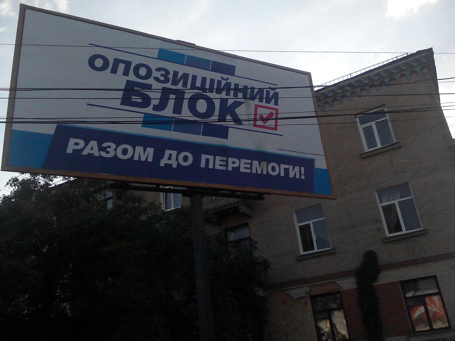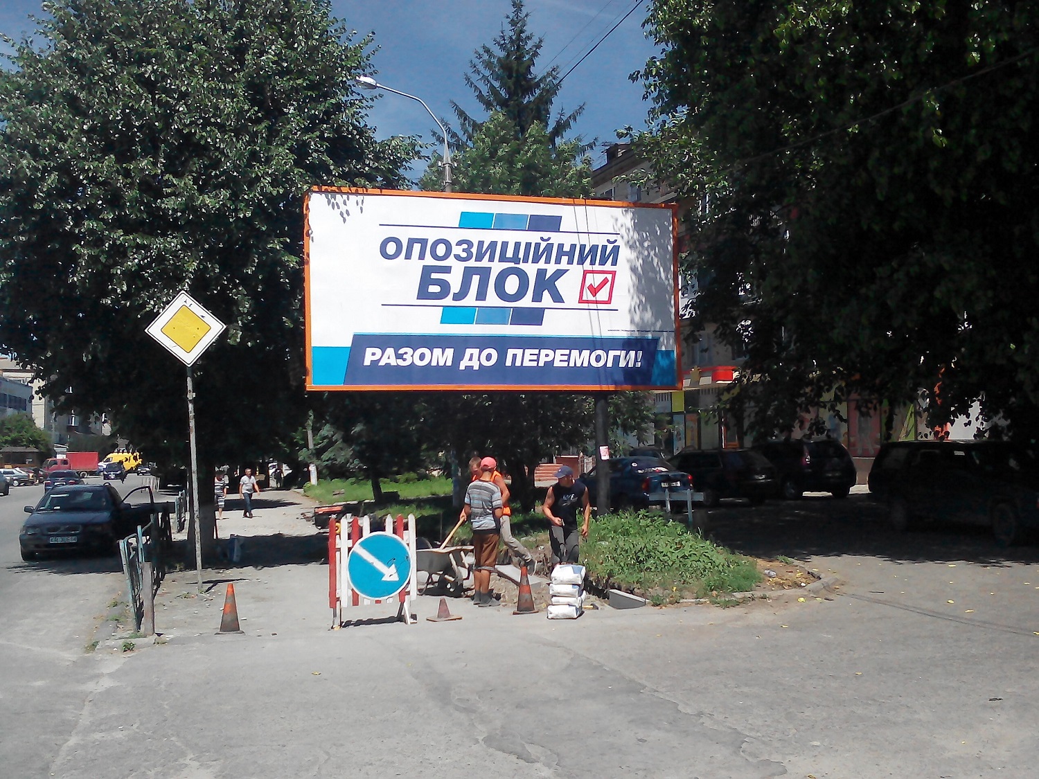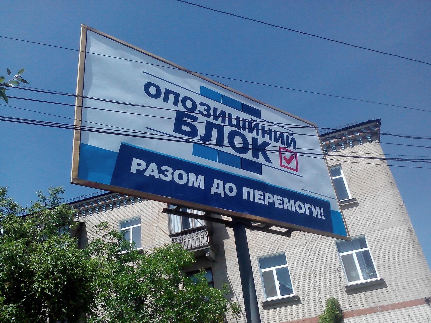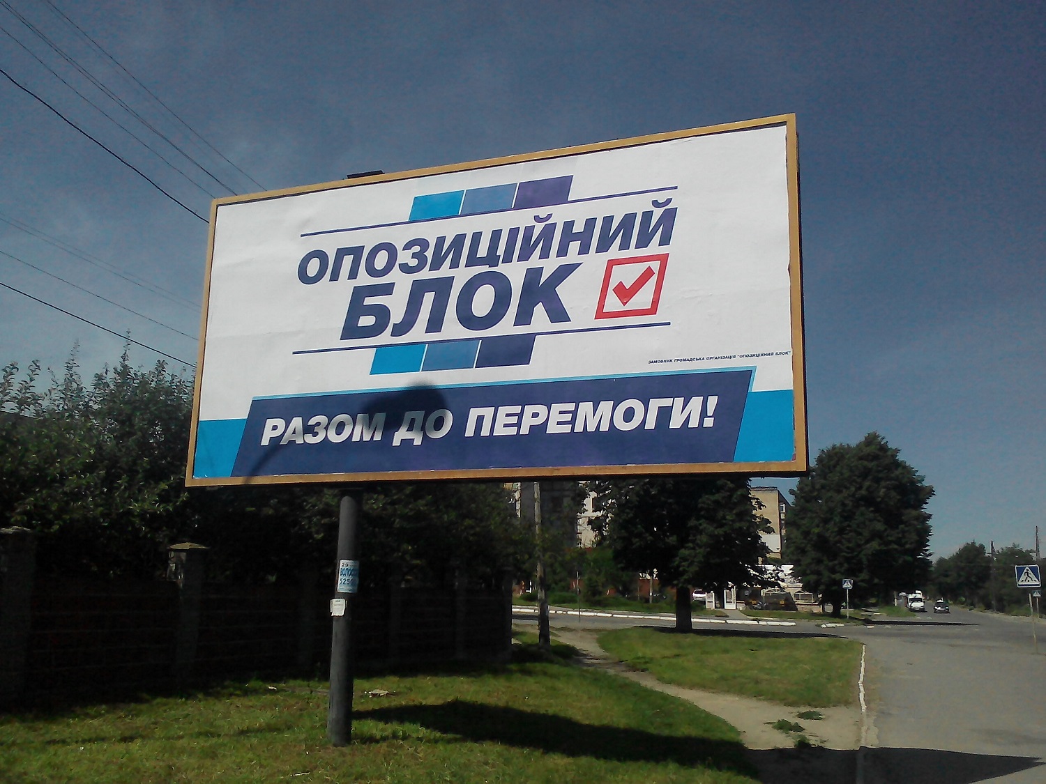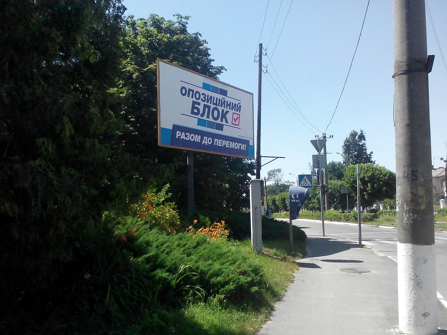 Одразу чотири білборди «Опозиційного блоку» без необхідних вихідних відомостей виявили 26 червня в місті Шепетівці. Таку ж зовнішню рекламу спостерігач ОПОРИ зафіксував 27 червня в місті Славуті. Дизайн білбордів (назва політичної партії, квадрат з позначкою-«пташкою» та гасло «Разом до перемоги!») дає підстави вважати їх агітаційними. Водночас вихідних даних на них немає, лише вказано: «Замовник громадська організація «Опозиційний блок».