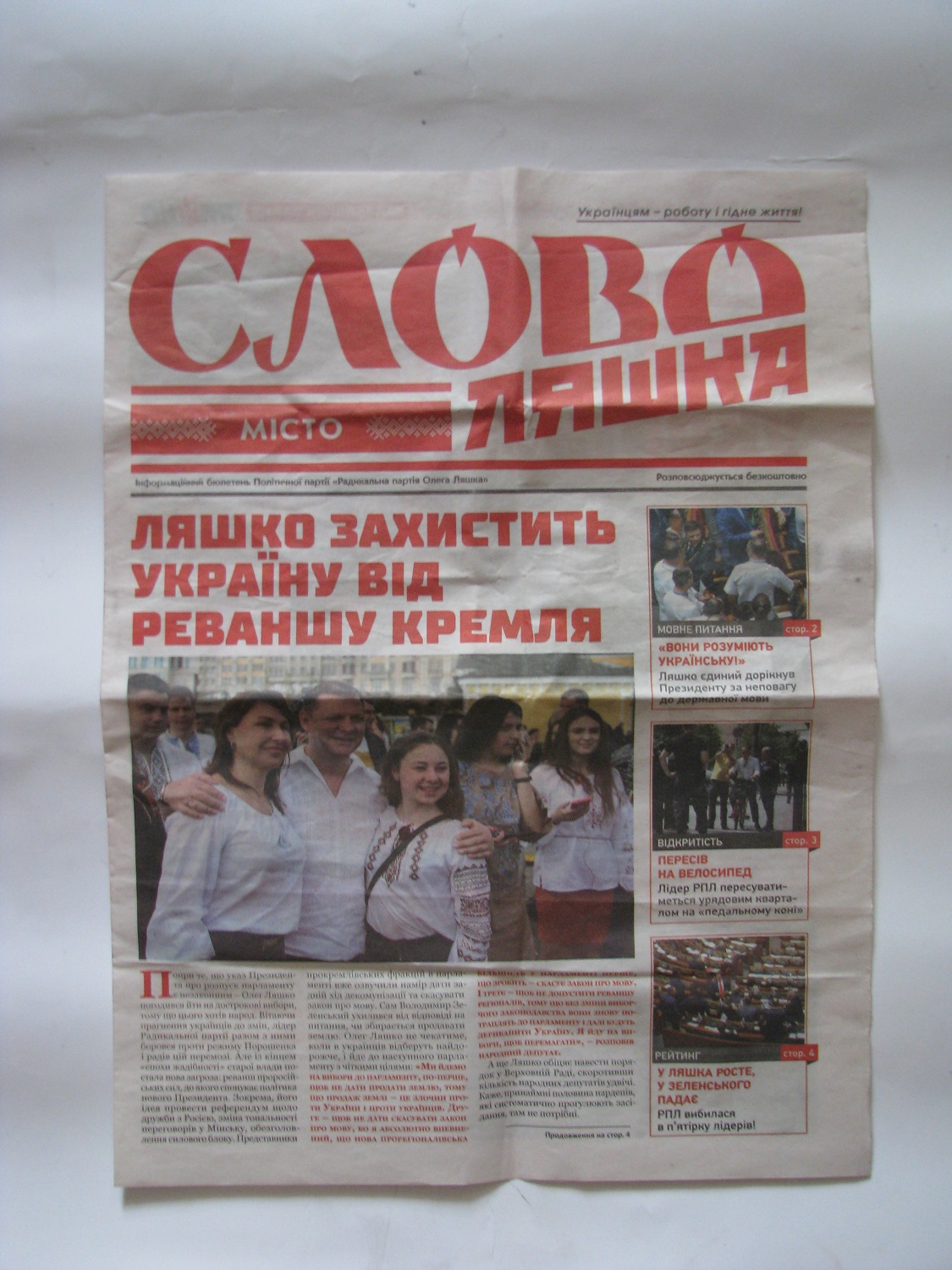 Інформаційний бюлетень «Слово Ляшка», що містив матеріали з ознаками агітації на користь лідера Радикальної партії Олега Ляшка, роздавали 28 червня з партійного намету, розташованого на вулиці Героїв Небесної Сотні, неподалік ринку, в місті Шепетівці. Як повідомляє спостерігач ОПОРИ, друковані матеріали не містили вихідних даних, необхідних відповідно до вимог Закону України «Про вибори народних депутатів України».