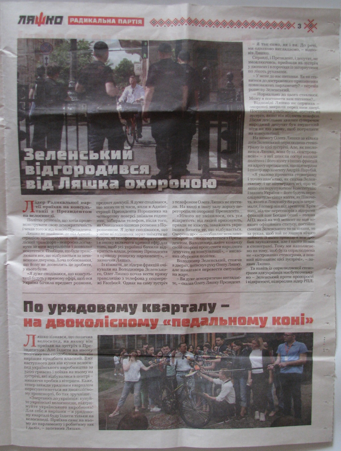 З порушенням виборчого законодавства опублікували в інформаційному бюлетені матеріал «Рейтинги: у Ляшка росте, у Зеленського падає». Частина 1 статті 67 Закону України «Про вибори народних депутатів України» визначає, що при оприлюдненні результатів соціологічних опитувань необхідно вказувати територію, яку охоплювало опитування, розмір та спосіб формування соціологічної вибірки опитаних, метод опитування, точне формулювання питань, можливу статистичну похибку. Цієї інформації у бюлетені не зазначили. Аналогічний факт нещодавно зафіксувала ОПОРА й у Чернівецькій області.