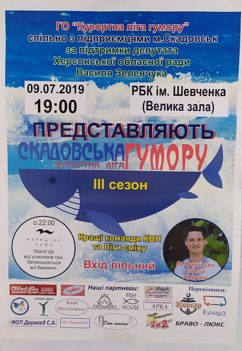 Так, 9 липня в місті Скадовськ планується виступ Скадовської курортної ліги гумору, де виступлять команди КВН та Ліги сміху. На афіші заходу зазначено, що захід відбудеться за підтримки депутата Херсонської обласної ради Василя Зеленчука, який є кандидатом в народні депутати по 186-му округу від ВО «Батьківщина».
