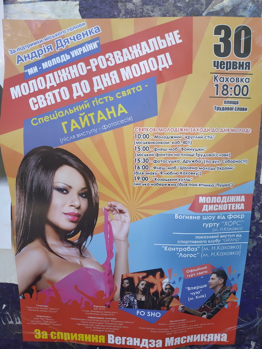 30 червня в місті Каховка відбулося молодіжно-розважальне свято до Дня молоді, спеціальним гостем якого була співачка Гайтана, з фаєр-шоу та дискотекою. На афіші було зазначено «За сприяння Вегандза Мясникяна» – кандидата в народні депутати по 185-му округу (самовисування).