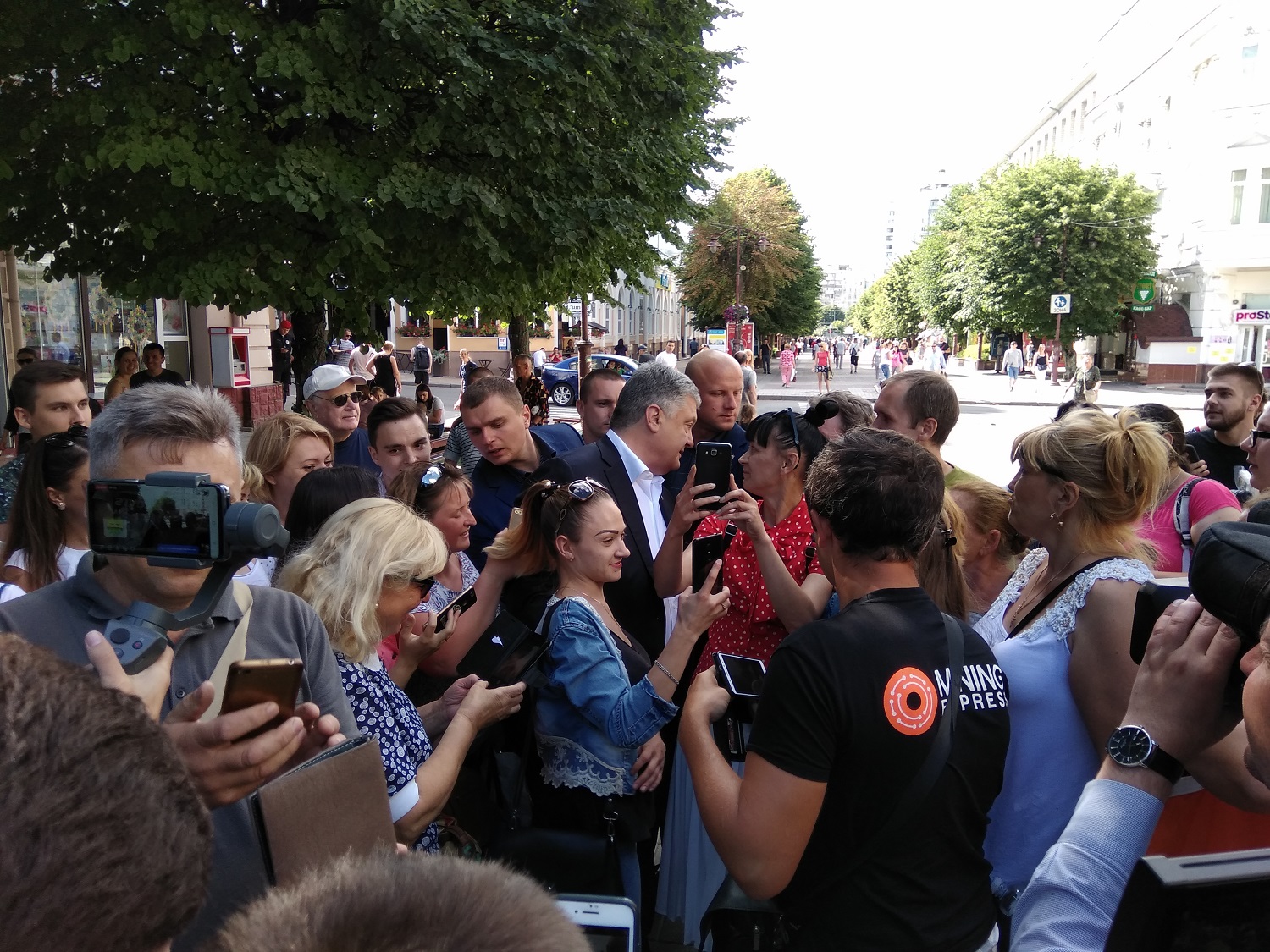 У Кам’янці-Подільському, як повідомляє спостерігачка ОПОРИ, під час виступу Петро Порошенко закликав своїх прихильників «допомогти відпустити кульки» начебто симпатику Анатолія Шарія, після чого виникла штовханина, яка, утім, тривала недовго.