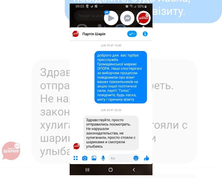 Скрінкопія переписки із офіційною сторінкою партії Шарія