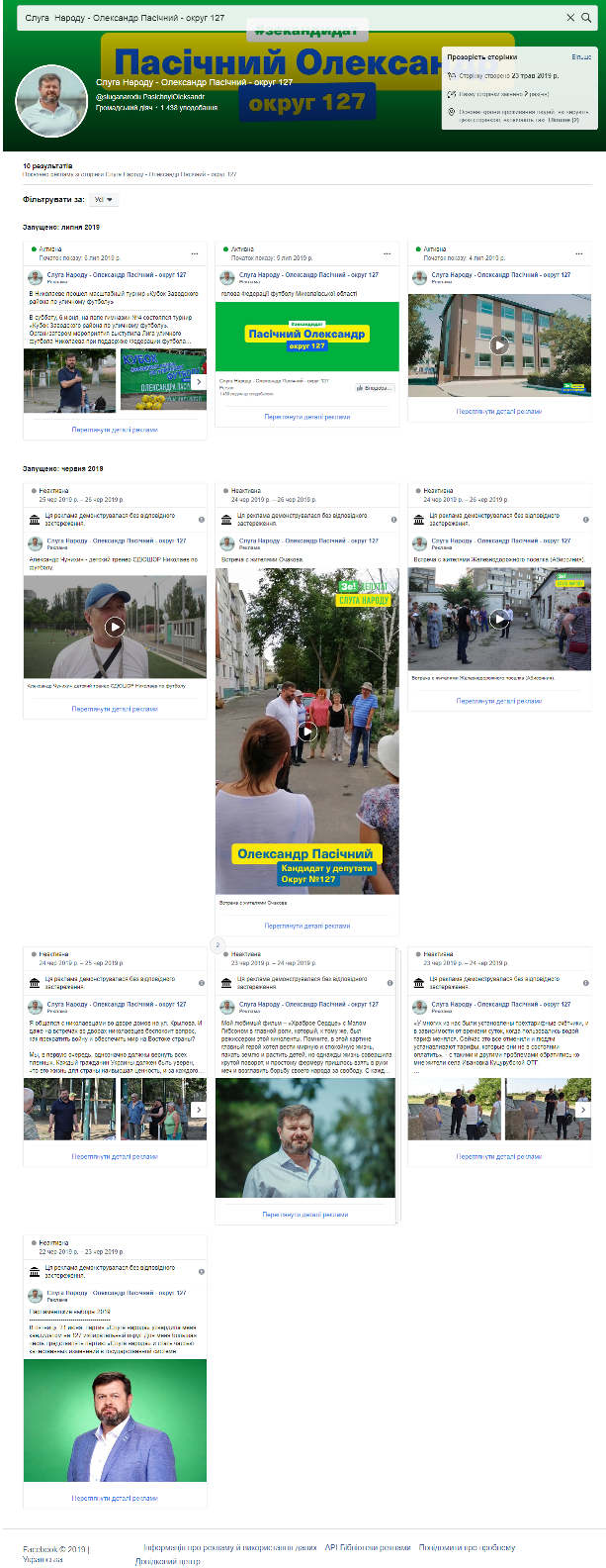 Слід зауважити, що новина про цей захід розміщена на сторінці Слуга Народу - Олександр Пасічний - округ 127 в Facebook та розповсюджується у цій соціальній мережі з поміткою «Реклама». В свою чергу Ліга вуличного футболу розміщує на своїй сторінці агітаційні ролики кандидата Олександра Пасічного з написом партії «Зе! Депутат Слуга народу».