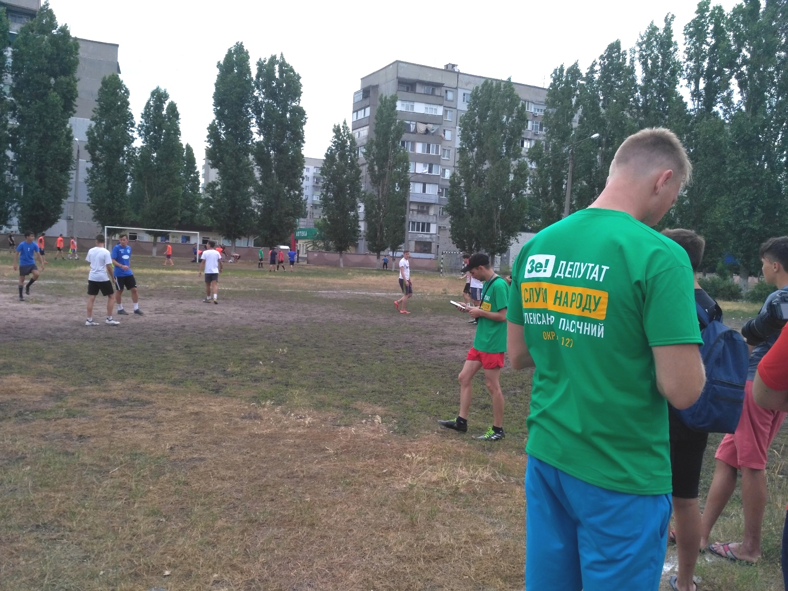 Окрім того, арбітри турніру Юрій Ковальчук і Тарас Дегтяр були вдягнені і у брендовані зелені футболки з написом «Зе! Депутат Слуга народу Олександр Пасічний Округ №127». Головний суддя Євген Фішман на початку заходу теж був одягнений у таку футболку, однак для вручення м’ячів переодягнувся у звичайну. Позаду стола організаторів був розміщений банер із текстом «Кубок Заводского района по уличному футболу при підтримці Олександра Пасічного».