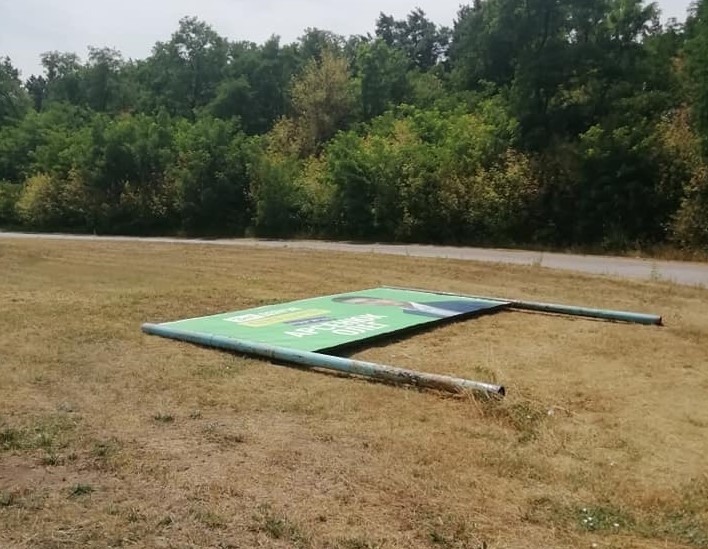 Окрім того, вчора, 7 липня у Чигирині був повалений білборд із політичної рекламою кандидата в депутати по 195 окрузі від партії «Слуга народу» Олега Арсенюка. Про це сам Арсенюк повідомляє у «Фейсбуці».