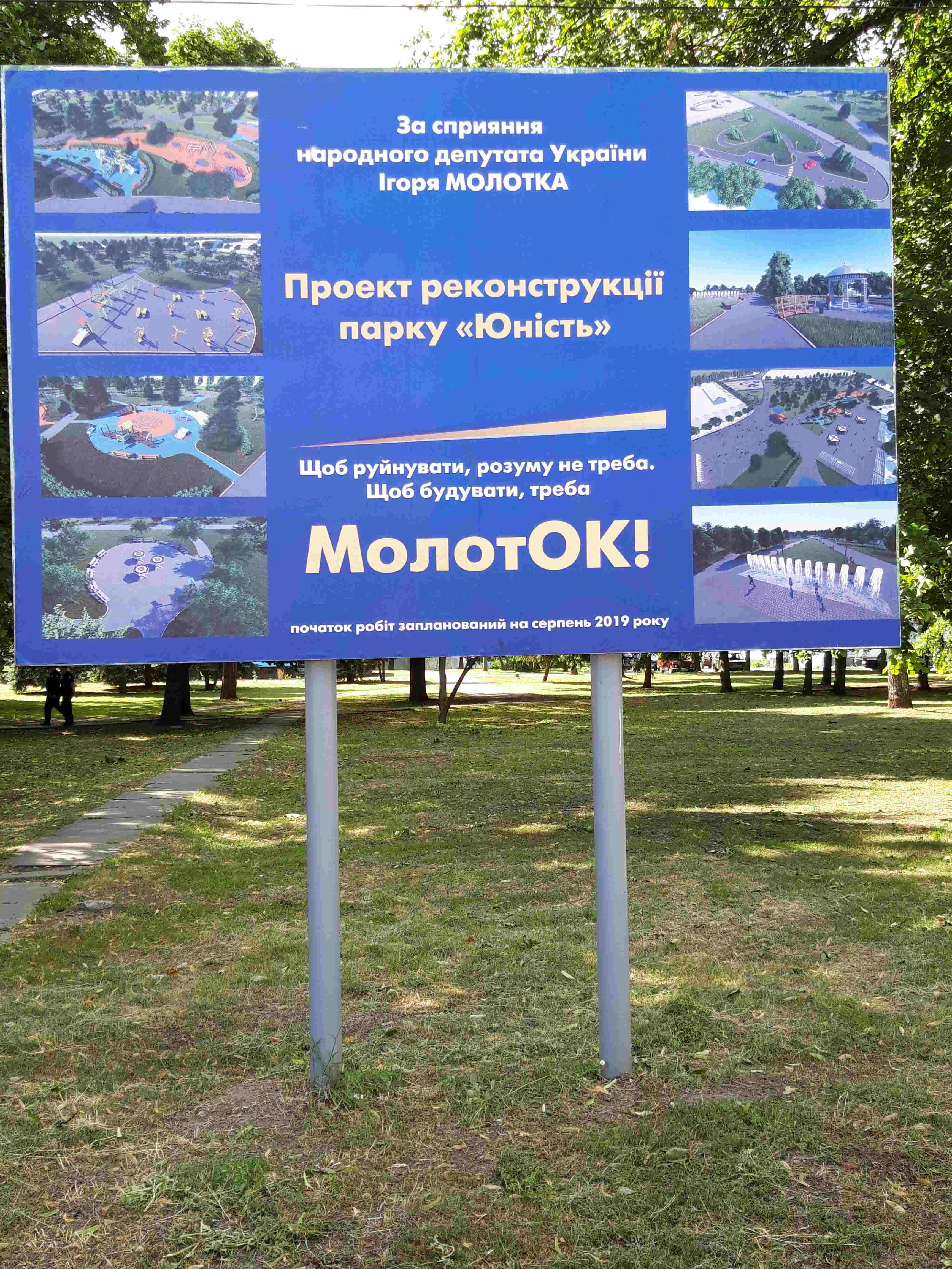 Наприкінці червня та на початку липня спостерігачі ОПОРИ фіксують активності кандидата у народні депутати у 160 виборчому окрузі, депутата Верховної Ради України VIII скликання Ігоря Молотка (суб’єкт висування - самовисування). Зокрема, деякі об’єкти інфраструктури на території виборчого округу ремонтуються «за сприяння» кандидата. Наприклад, на табличці, яка сповіщає про заплановану реконструкцію місцевого парку «Юність», можна вгадати натяки на прізвище кандидата. Зокрема лозунг: «Щоб руйнувати, розуму не треба. Щоб будувати, треба МолотОК» було розміщено на робочому одязі працівників, які ремонтували прибудинкову дорогу у місті Конотоп (будинок № 55 по вулиці Успенсько-Троїцькій).