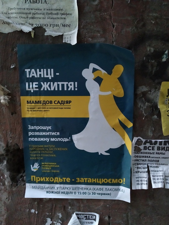Також під час свята анонсували танці для «поважної молоді», які проходять щонеділі в місцевому парку. На афіші поряд з його ім’ям зазначено «За підтримки: Громадянська позиція. Команда Гриценка». Хоча Садіяр Мамедов є самовисуванцем на цих виборах, у відомостях про кандидата на сайті ЦВК зазначено, що він є членом партії «Громадянська позиція».