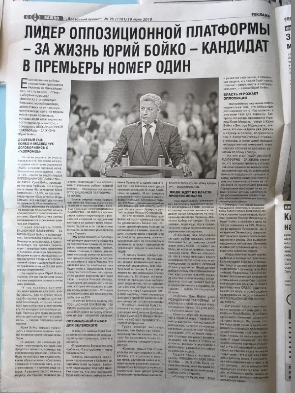 Дві ідентичні публікації у різних ЗМІ про лідера «Опозиційної платформи – За життя» Юрія Бойка, де міститься заклик і аргументація розглядати його кандидатуру на посаду прем’єр-міністра. Агітаційний матеріал належним чином розташований у рекламному розділі, проте, у іншому виданні такого відокремлення немає.