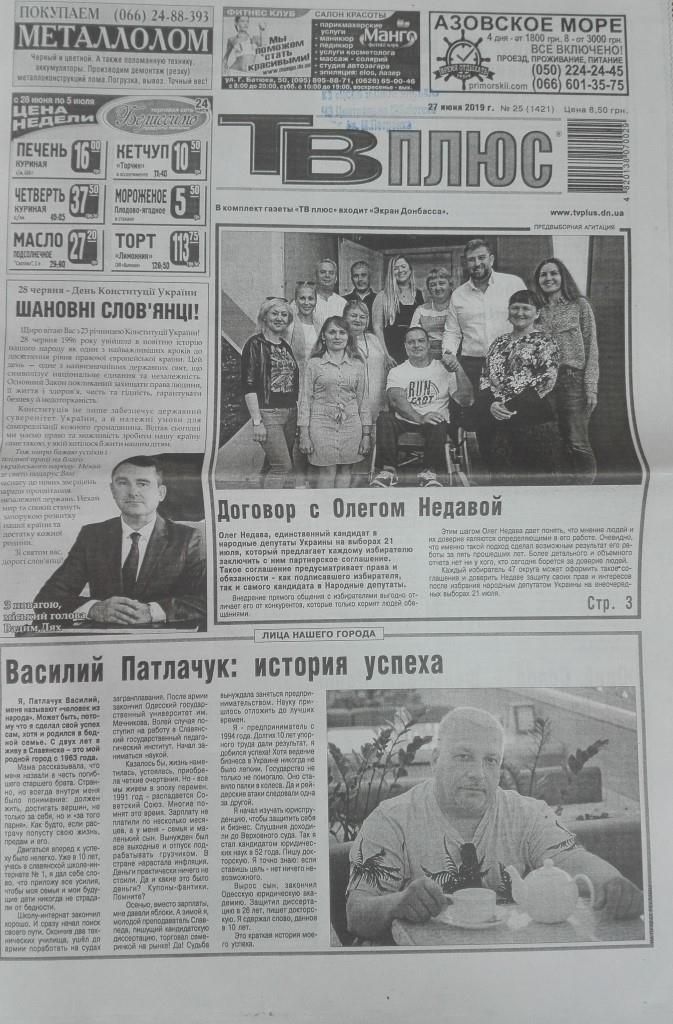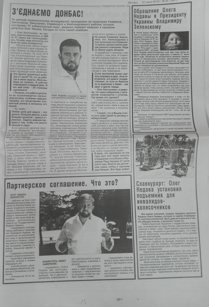 Самовисуванець Олег Недава, член партії «Наш край» і чинний народний депутат України, траплявся у ЗМІ виключно на правах реклами. Обидва матеріали у випуску слов’янської газети за червень місяць помарковані належним чином.