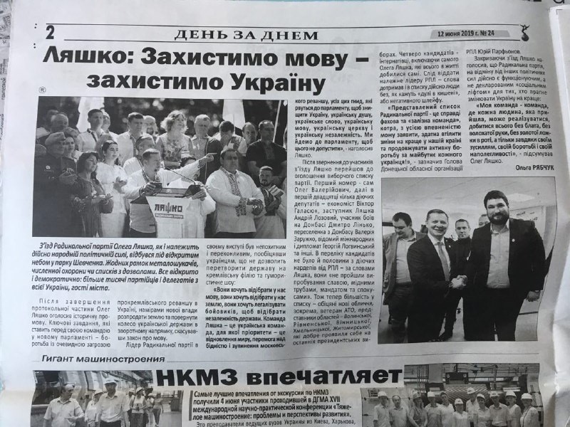 Така сама ситуація з лідером Радикальної партії Олега Ляшка: більшість публікацій, у яких йдеться про з’їзди партії, передвиборчі обіцянки, персональні звернення Олега Ляшка, що висунутий від «радикалів» для участі у виборах, відокремлені як рекламні. Принаймні три таких матеріалів з чотирьох опрацьованих є маркованими.