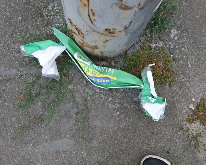 Фото Громадянської мережі ОПОРА. Ось так утилізували агітацію з ознаками порушення на 590 маршруті в Києві