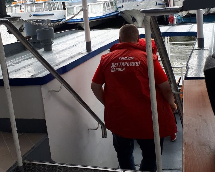 У день проведення екскурсії спостерігачі прибули у річковий порт. Усіх, хто мав флаєри, запросили на теплохід “Говерла”. Організовували процес люди у маніжках “Команда Лариси Дегтярьової”.