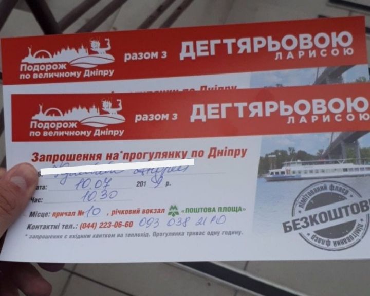 Про захід ОПОРА дізналася на зустрічі мажоритарниці з киянами. 2 липня. Тоді політикиня анонсувала прогулянку Дніпром і повідомила, що відвідати її можна буде, попередньо звернувшись у приймальню.