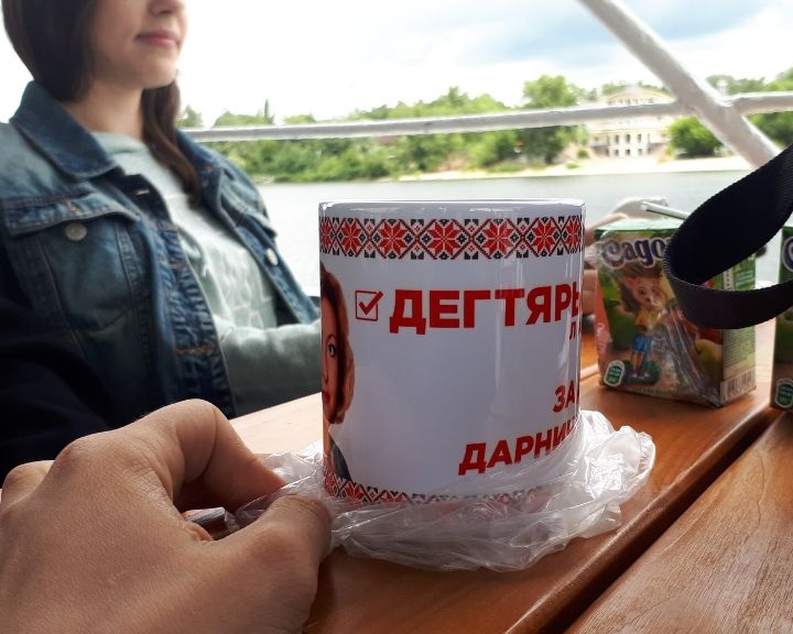 Усього на теплоході їхало до 140 людей. Прогулянка Дніпром тривала близько години. За цей час агітатори встигли також вручити горнятка з портретом пані Лариси всім, хто народився в липні.