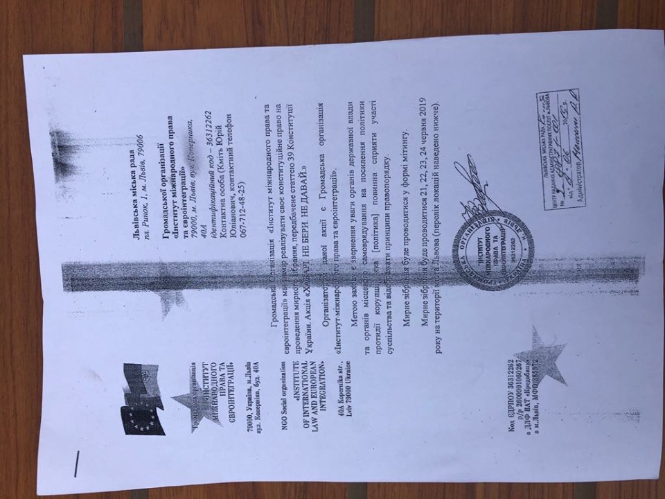 Наліпки про хабарі у липні можна помітити на будівлях та електроопорах у Львові. У документах, які ОПОРІ показали учасники акції зазначено, що це мирне зібрання у формі мітингу. Хоча у соцмережах її називають флеш-мобом. Захід організовувала громадська організація «Інститут міжнародного права та євроінтеграції». Представник ГО Юрій Кміть просив дозволу щодо проведення такого заходу 21-24 червня у Львівської міської ради. У ці дні активну участь у заході брав Ростислав Мельник. Хоч Мельник офіційно зареєстрований кандидатом у народні депутати у 116 виборчому окрузі від політичної партії «Слуга народу» 25 червня, але його активність простежується зі стартом виборчої кампанії.