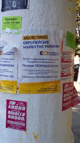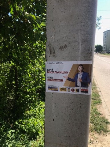 На електроопорах та вікнах магазинів (115 округ) висять постери кандидата Юрія Михальчишина (самовисування). «Щороку спостерігається одна і та сама картина. Не можу це прокоментувати. Не бачив я такого. І своїм представникам безперечно не казав, так робити», - зазначив Михальчишин.