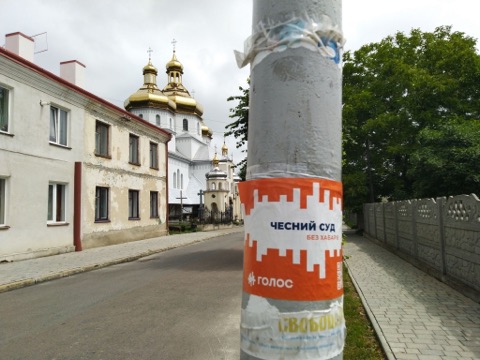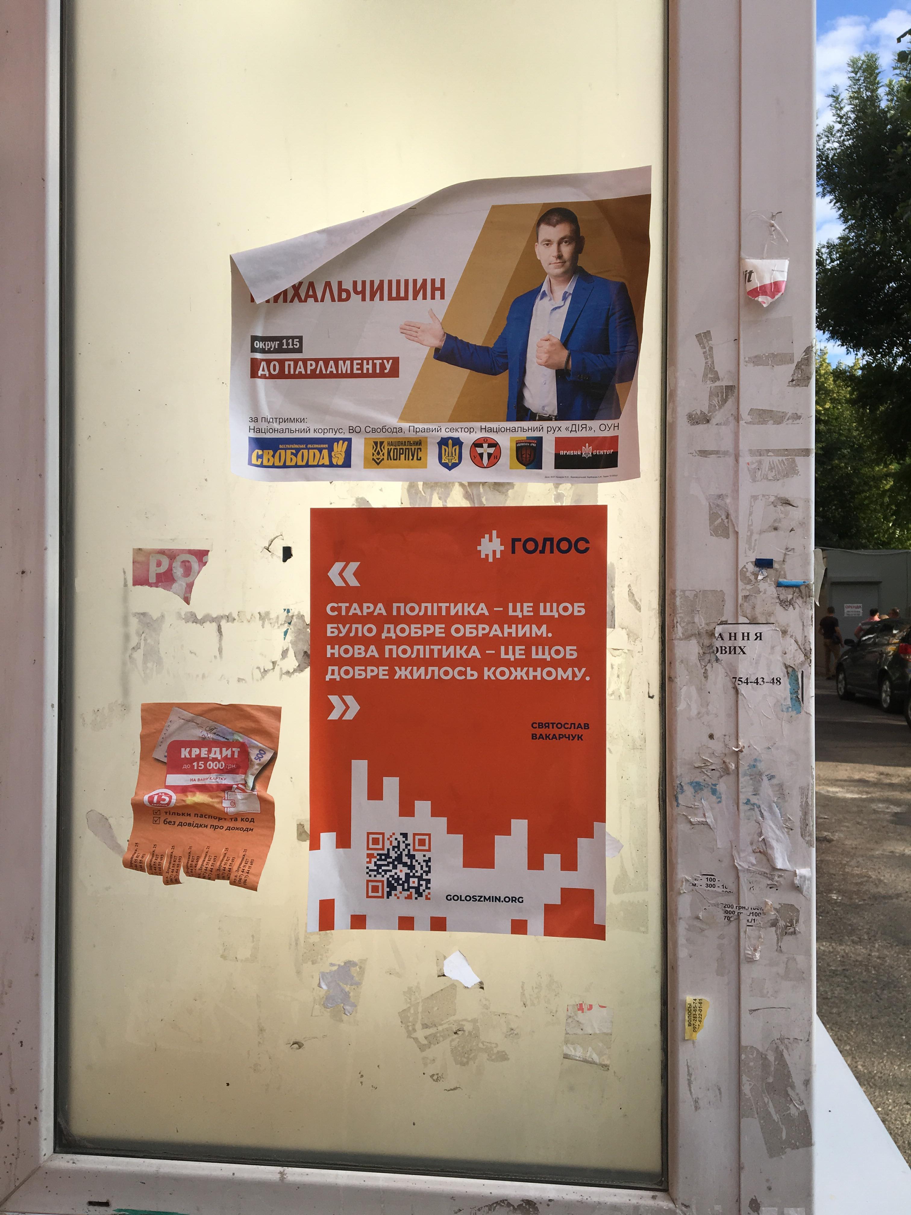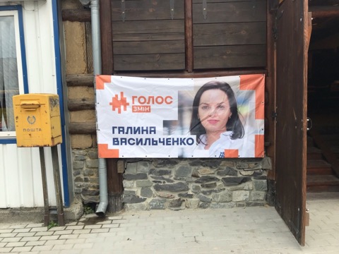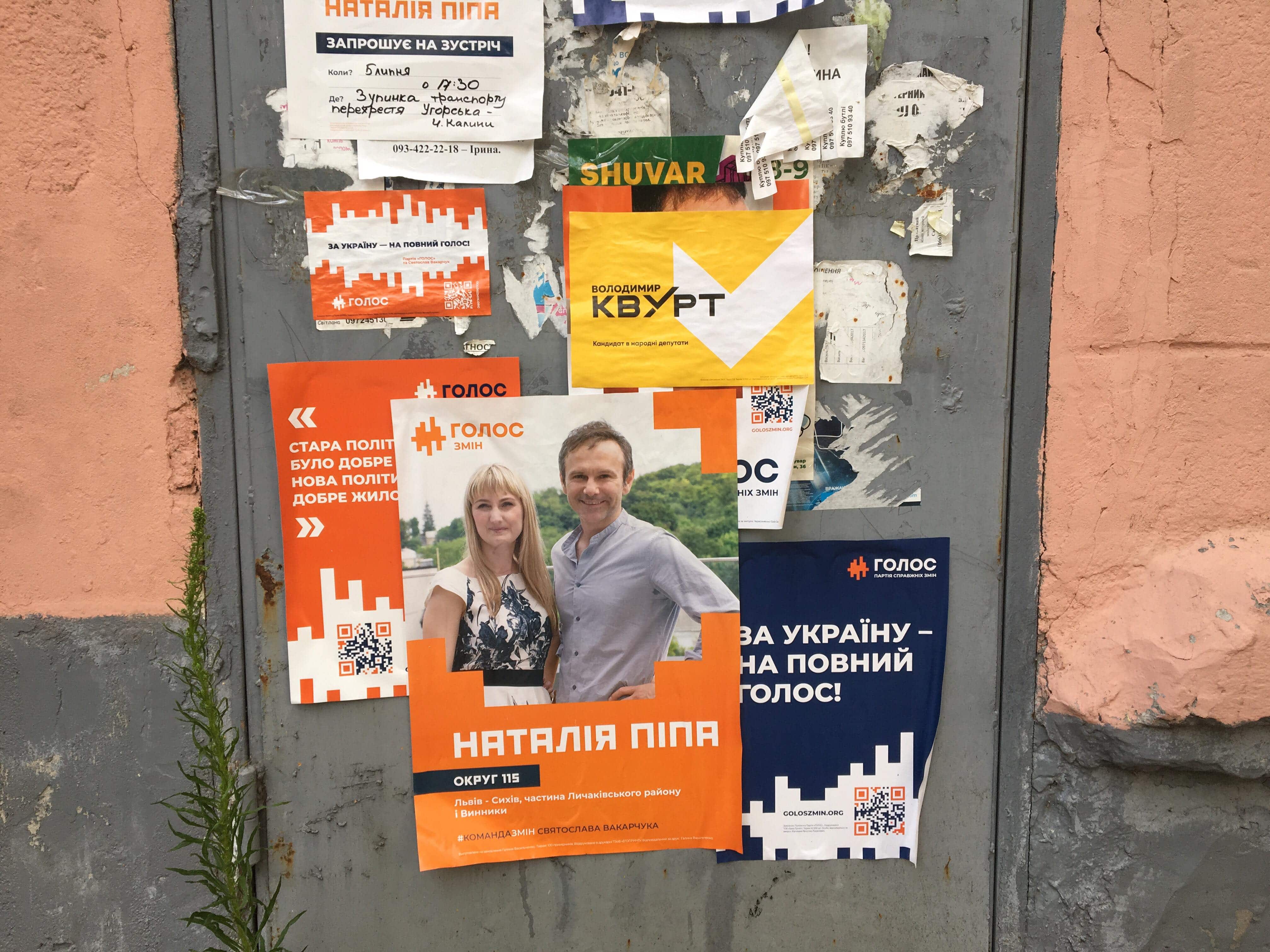 По всій території Львівської області також висять рекламні матеріали «Голосу», інколи без вихідних даних. «Мотивовані вчителі, захищені вояки, чесні судді. Так звучить наш голос!» наклеєно на закинутій будівлі (115 округ), «Стара політика – це щоб було добре обраним. Нова політика – це щоб добре жилось кожному. Святослав Вакарчук» на дошці оголошень біля під’їздів (117 округ), «Інвестиції в Україну без олігархів, нові політики без кумівства» на дошці оголошень Дрогобицького державного університету ім. І. Франка (121 округ), «Щоб закінчилася епоха бідності, має закінчитися епоха безкарності. Святослав Вакарчук» - на електроопорах та парканах (120 округ). Також запрошення на зустріч та банер біля коворкінгу без вихідних даних із зображенням Галини Васильченко, кандидатки від «Голосу» ОПОРА зафіксувала у 118 окрузі. Васильченко пообіцяла зняти агітаційні матеріали без вихідних даних.