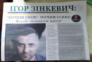 У приміському автобусі № 184 на панелі приладів спостерігачі ОПОРИ помітили 7 липня газети про Ігоря Зінкевича. Друковане видання про кандидата у народні депутати роздавали і в 138 маршрутному таксі. Зінкевич як самовисуванець кандидує у 116 виборчому окрузі.