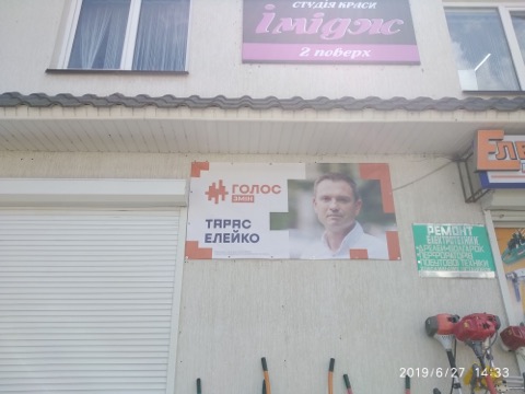 Поруч з плакатами Кавецького у 119 окрузі у місцях не призначених для агітації висять агітки кандидата у народні депутати (самовисування) Олександра Тіщенка. ОПОРІ не вдалося почути позицію кандидата.