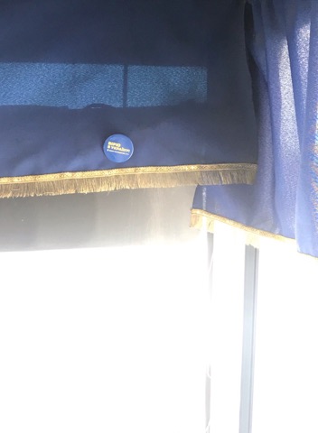 У приміському маршрутному таксі № 234 на віконній занавісці є значок «Вірю в Україну. Юлія Тимошенко».