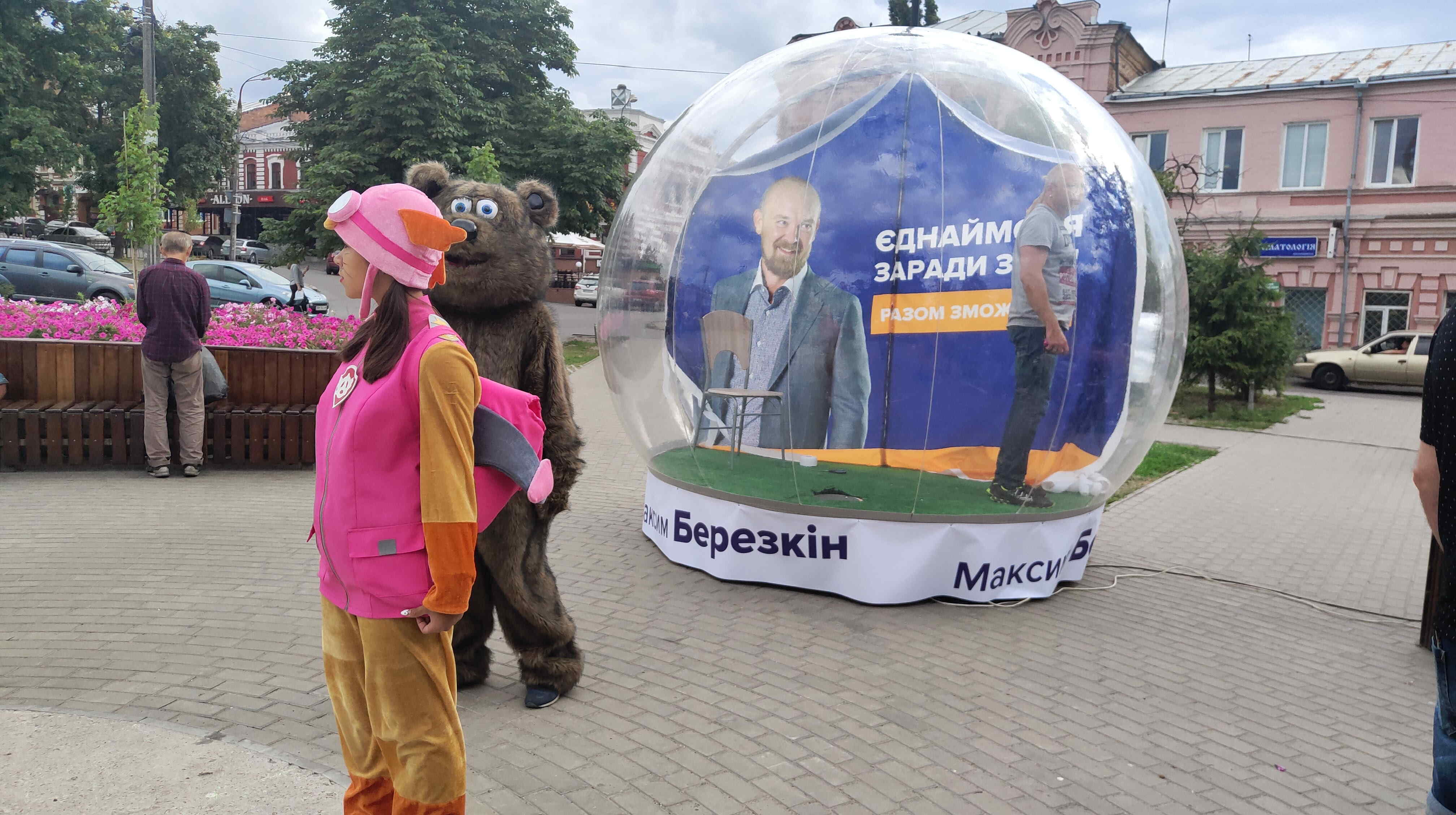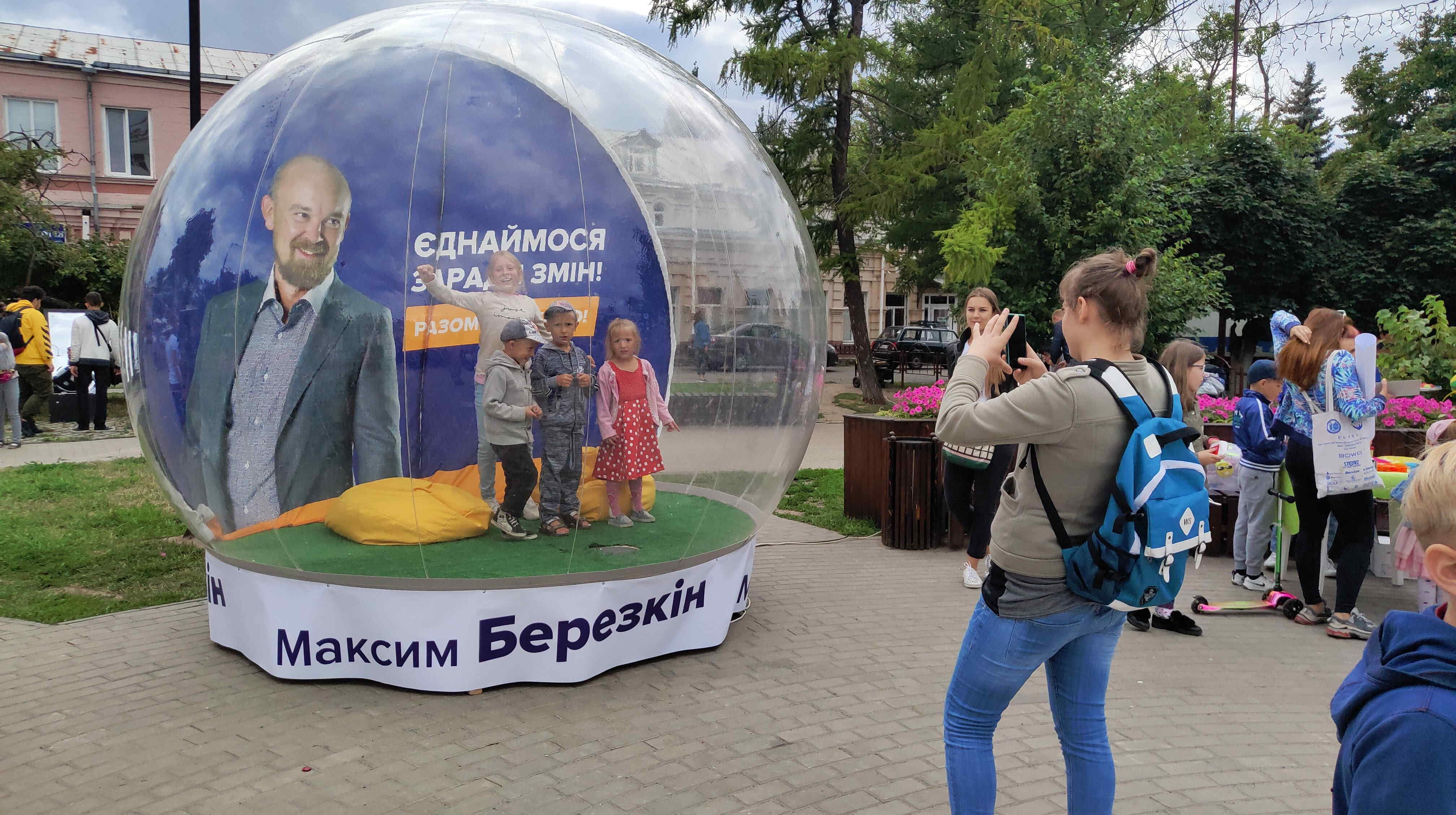 Крім того в програмі було “кріошоу” з використанням рідкого азоту. А посеред скверу, де відбувався захід було облаштовано фотозону, у вигляді надувної “шоу-кулі”, у якій знаходився банер із зображенням та ім’ям кандидата і лозунгом «Єднаймося заради змін». Неподалік також було припарковано автомобіль із рекламою кандидата.