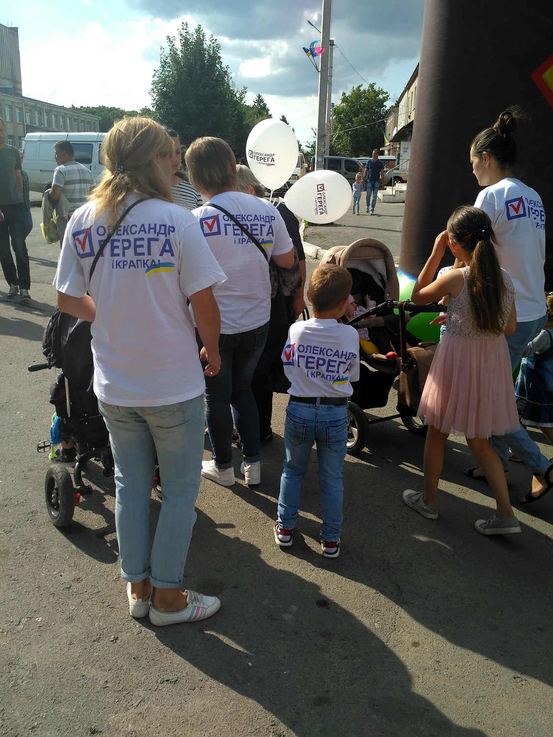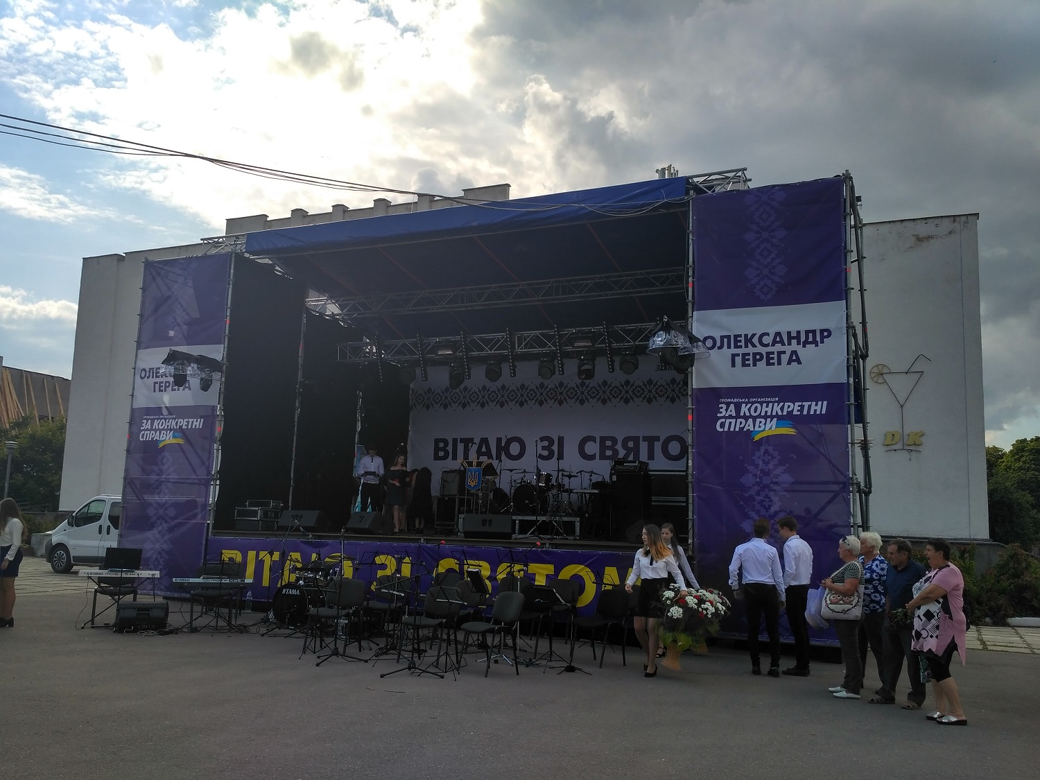 У п’ятницю, 12 липня, у смт Ярмолинцях святкували день селища. З цієї нагоди відбувся святковий концерт. Як повідомляють спостерігачі ОПОРИ, з обох боків сцени були розміщені банери з написами «Олександр Герега. Громадська організація «За конкретні справи». Деякі люди на території, де відбувалися гуляння, були одягнені в футболки із зображенням позначки «пташки» у квадраті та текстом «Олександр Герега і крапка!», у натовпі можна було побачити кульки з аналогічними написами.