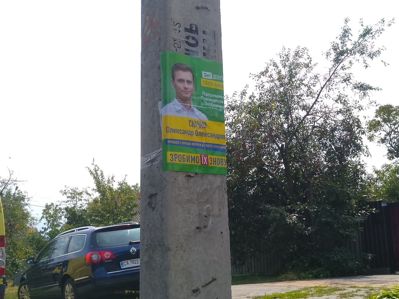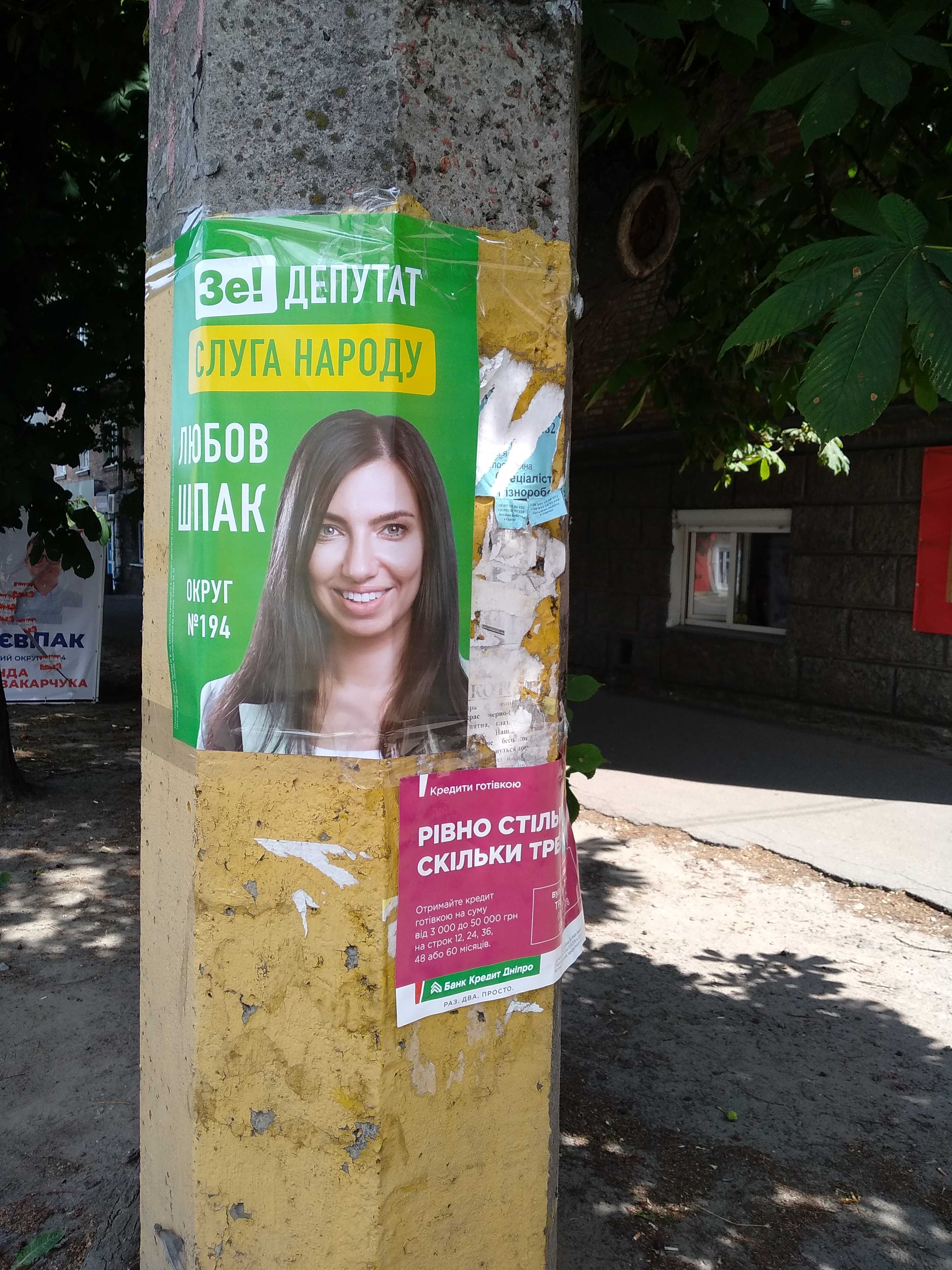 9 липня у Черкасах по вулиці Припортовій (194 виборчий округ) були зафіксовані агітаційні матеріали кандидатки в депутати від партії «Слуга народу» Любов Шпак, що були розміщені на елетроопорах. Зазначимо, що в подальшому такі випадки масово фіксувалися по всьому місту.