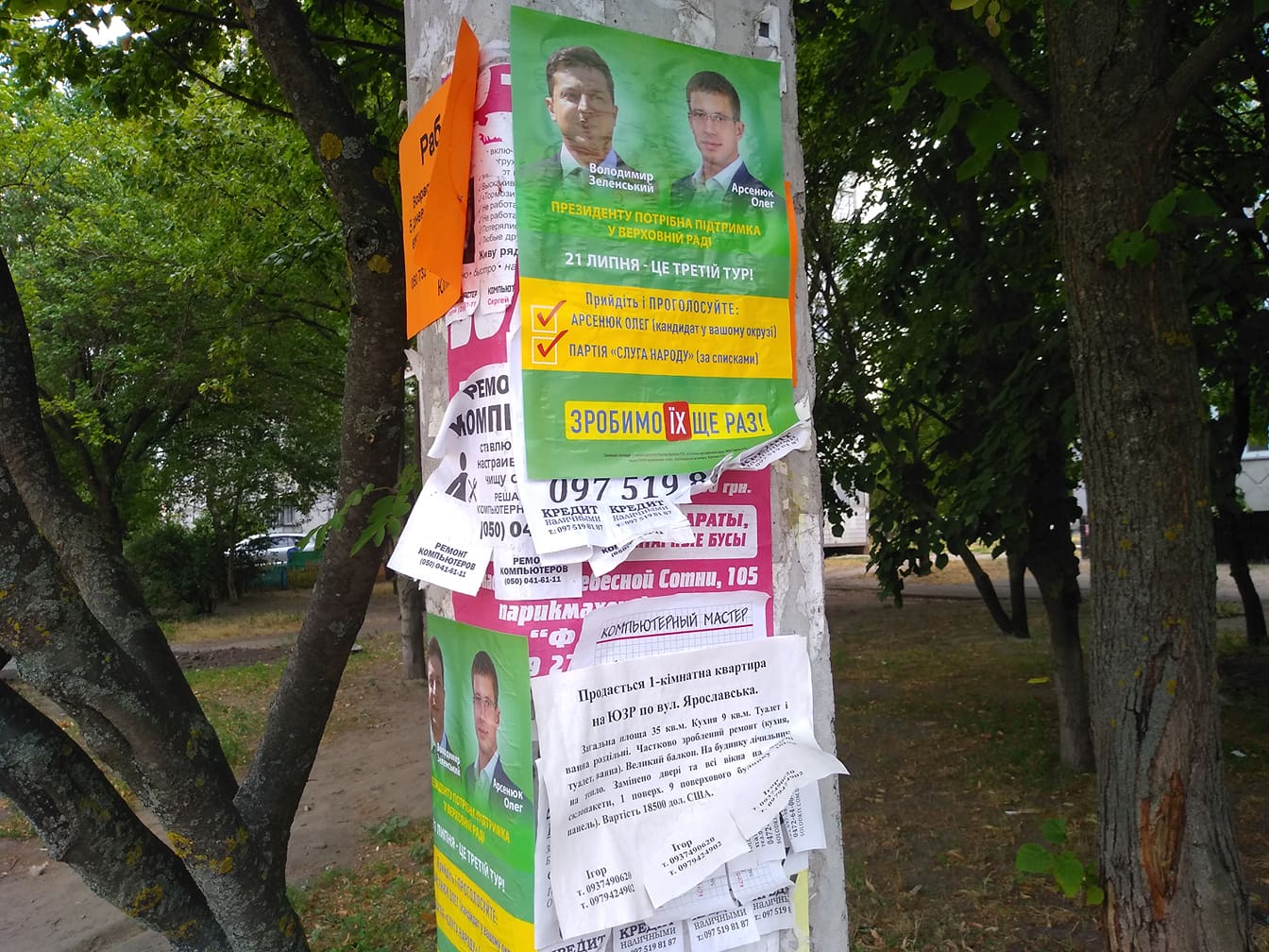 Зазначимо, що у цих випадках ймовірно має місце недотримання правил розміщення агітації та порушення норм благоустрою. У липні 2018 року набули чинності зміни до закону «Про рекламу». Зокрема, статтю 8 закону доповнено пунктом, згідно з яким забороняється розміщення реклами або рекламних засобів на підтримуючих, опорних та інших елементах контактної мережі, на засобах та обладнанні, у тому числі опорах зовнішнього освітлення.