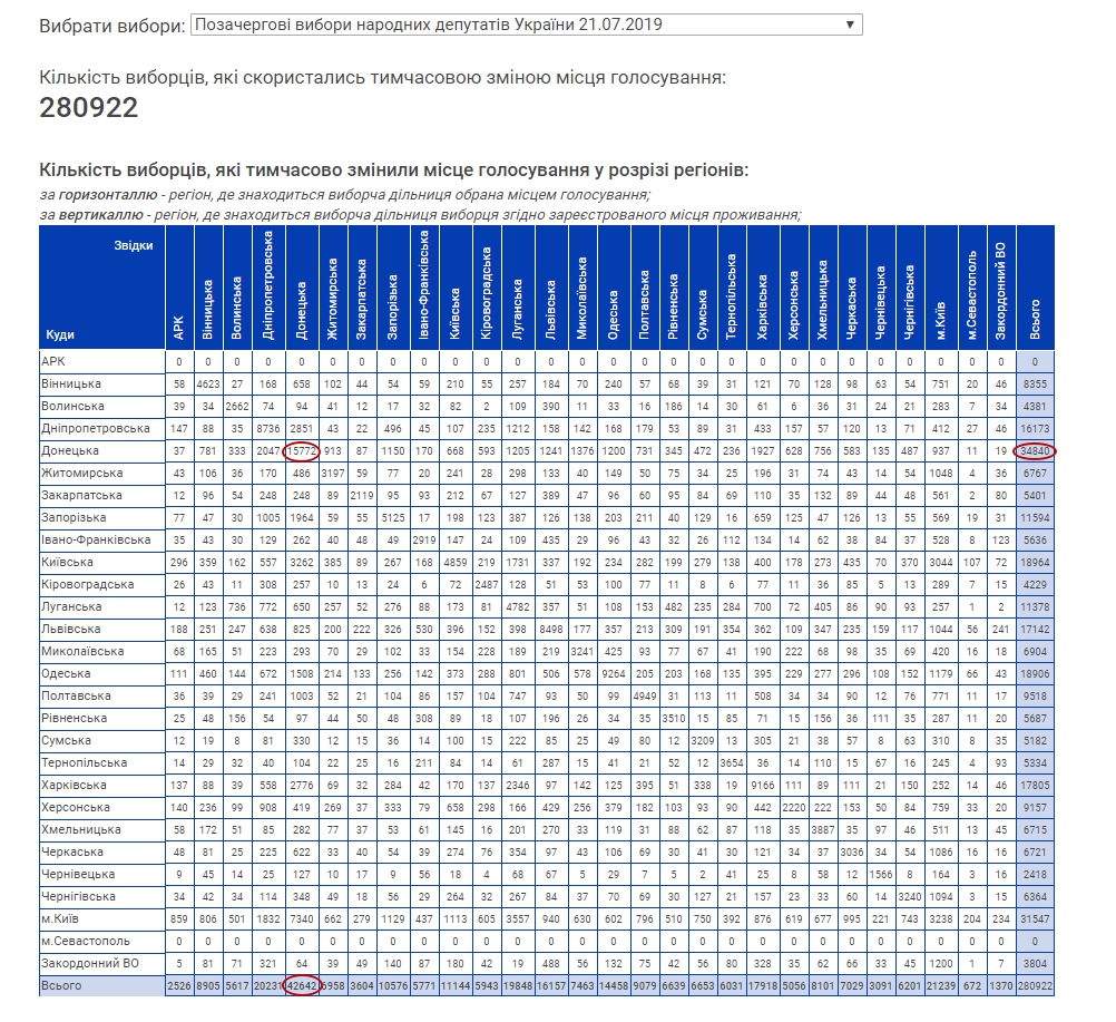 Загалом в Україні процедурою зміни місця голосування скористались 280 922 виборців.