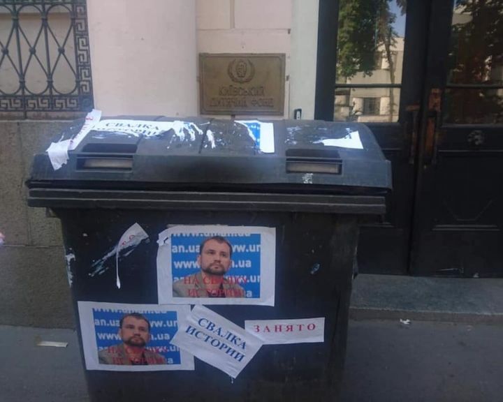 16 липня Володимир В'ятрович повідомив на своїй сторінці у соцмережі Facebook, що під двері Українського інституту національної пам'яті невідомі поставили смітник, обклеєний його фотографіями та аркушами з текстом «свалка истории».