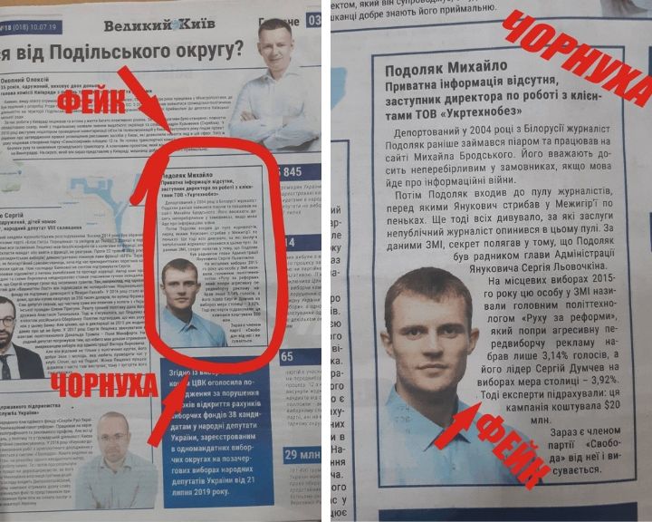 11 липня кандидат від ВО «Свобода» Михайло Подоляк, що балотується у 220 окрузі (Поділ) оприлюднив фотографії сторінок газети «Великий Київ» , де у статті під назвою «Хто балотується від подільського округу?» був розділ про нього як кандидата в депутати. Мажоритарник заявив, що інформація, викладена тут, є неправдивою.