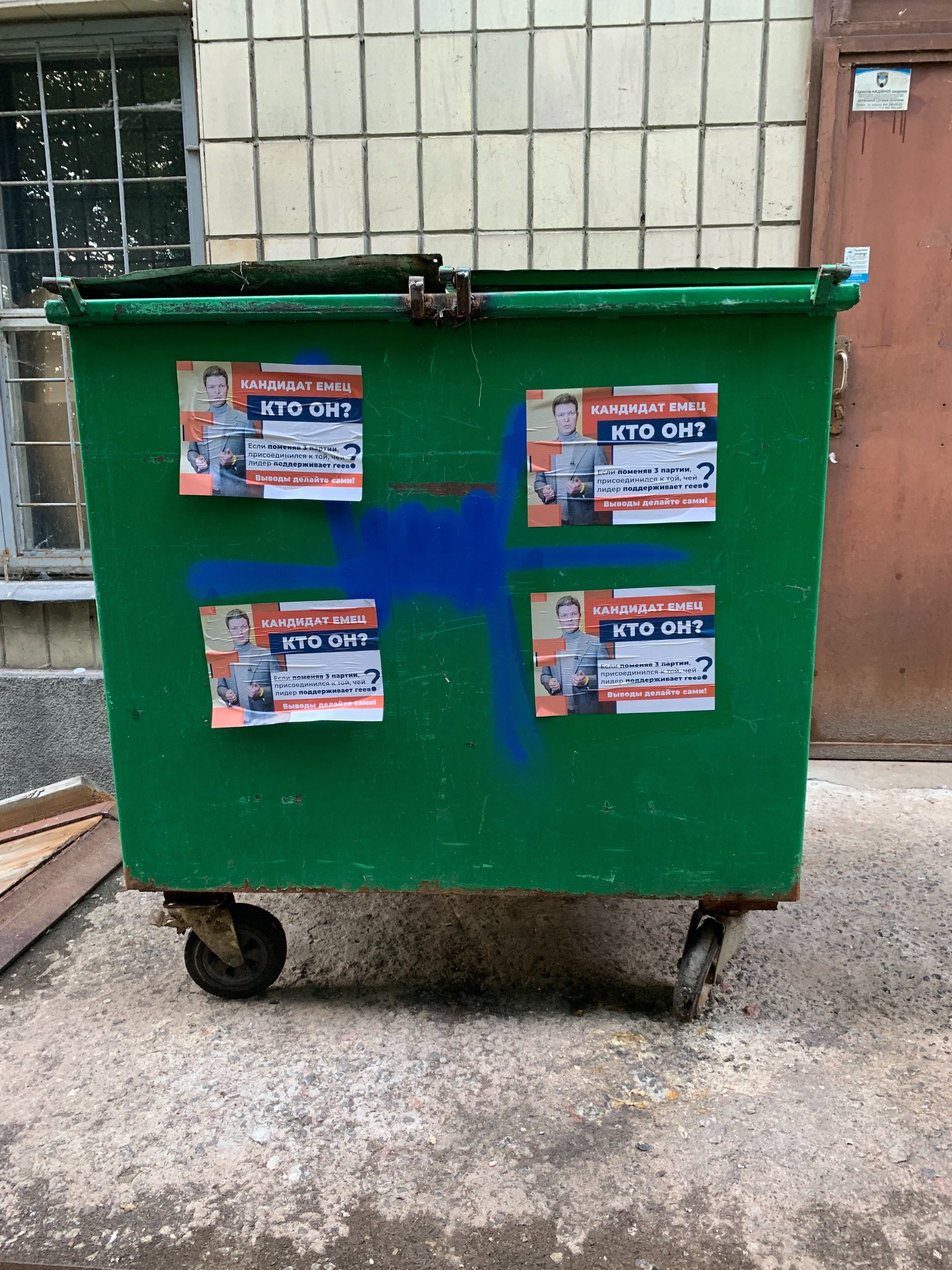 Кандидат повідомив журналістам, що смітник під стінами УІНП поставили люди, які поруч роздавали агітаційні матеріали від «Опозиційної платформи «За життя».