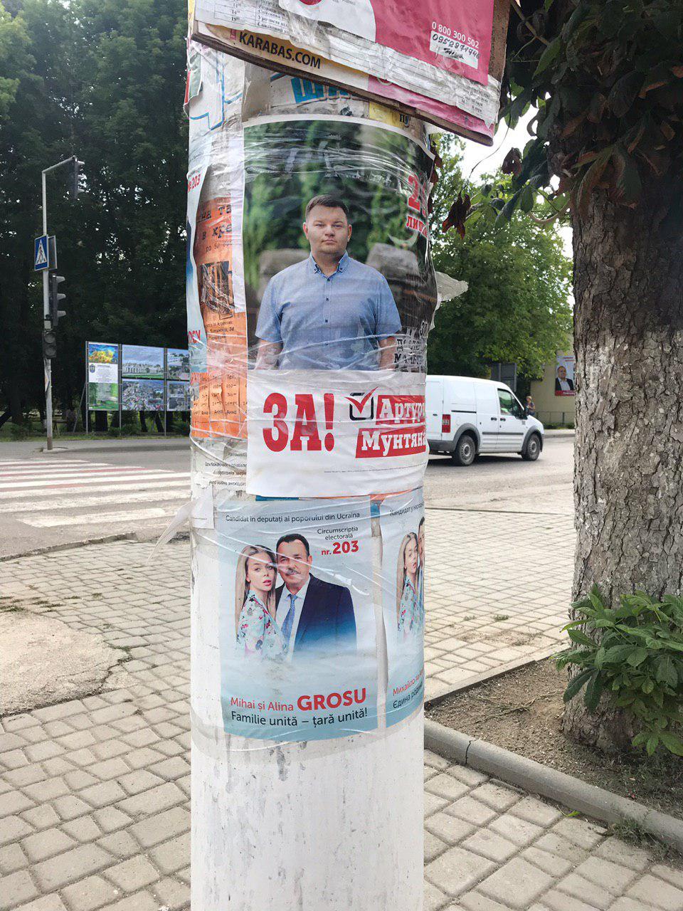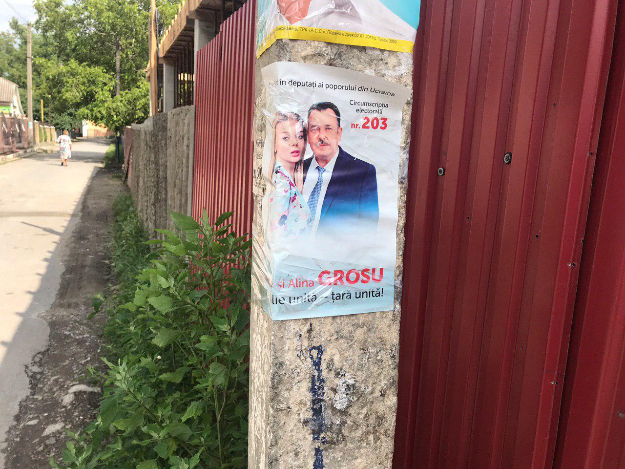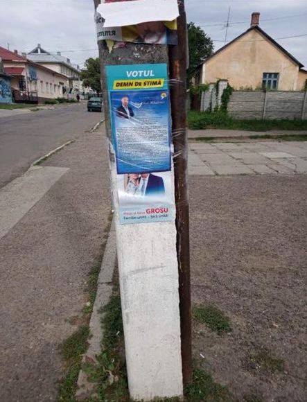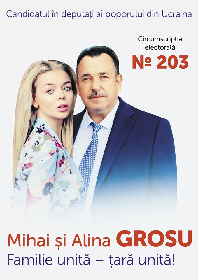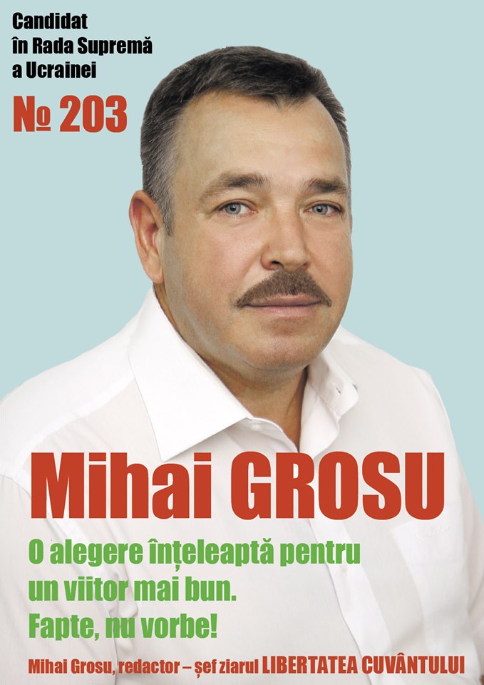 Михайло Гросу, самовисуванець – лідер по розміщенню агітаційних матеріалів румунською мовою. Зокрема, на стовпах м. Новоселиця можна спостерігати велику кількість плакатів румунською. Крім того, представники кандидата роздають агітаційні матеріали, де розміщено фото Гросу із донькою, а також його передвиборча програма.