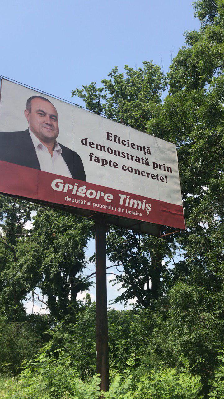 Також варто зазначити чинного нардепа – Григорія Тіміша, білборди із його зображенням можна було побачити на трасі Чернівці-Мамалига, проте наразі всі вони замінені на борди українською мовою.