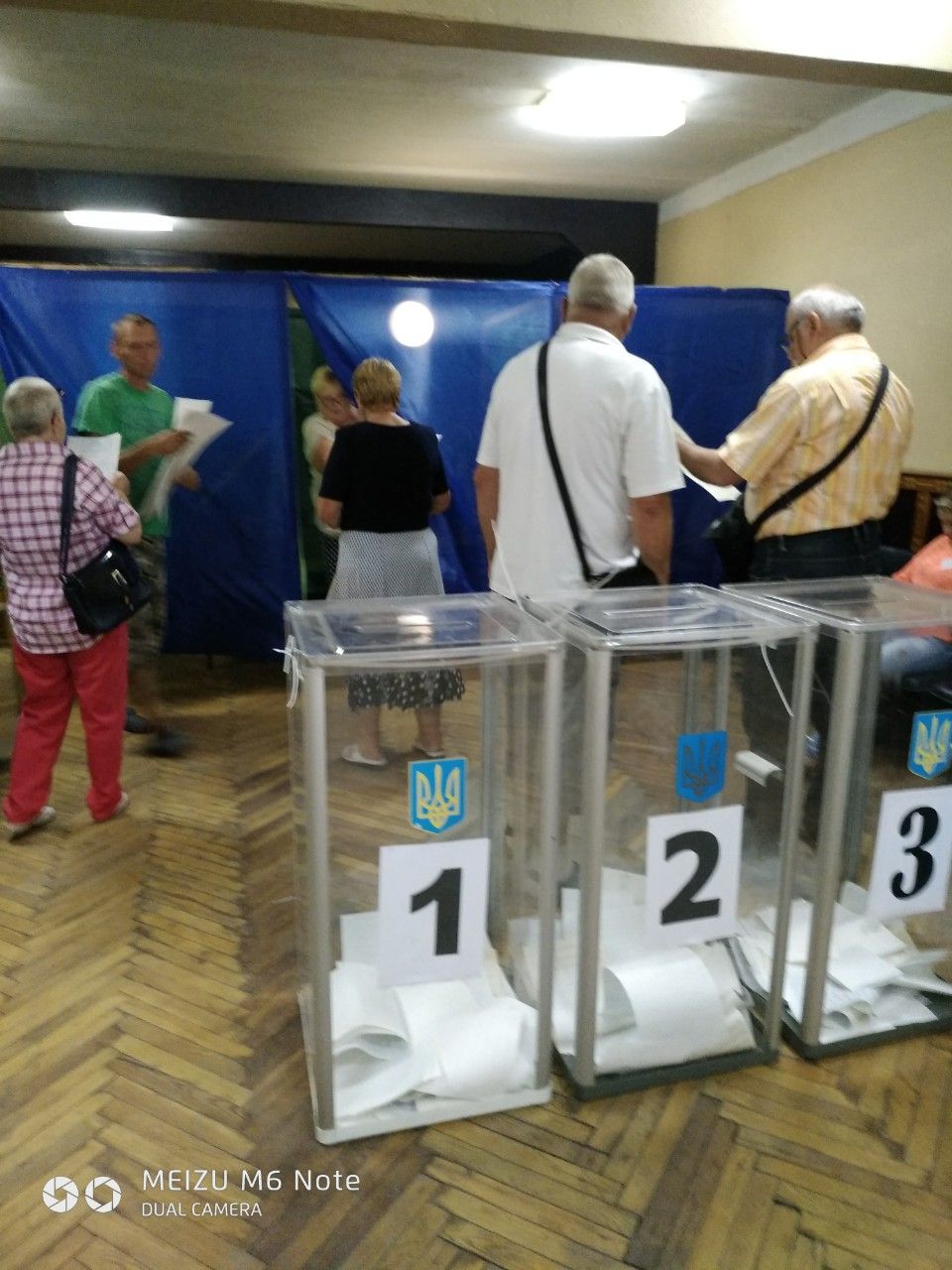 Дільниця №180448 м. Коростишів: 3 великих скриньок і 3 кабінок. На дільниці утворилася черга з виборців.