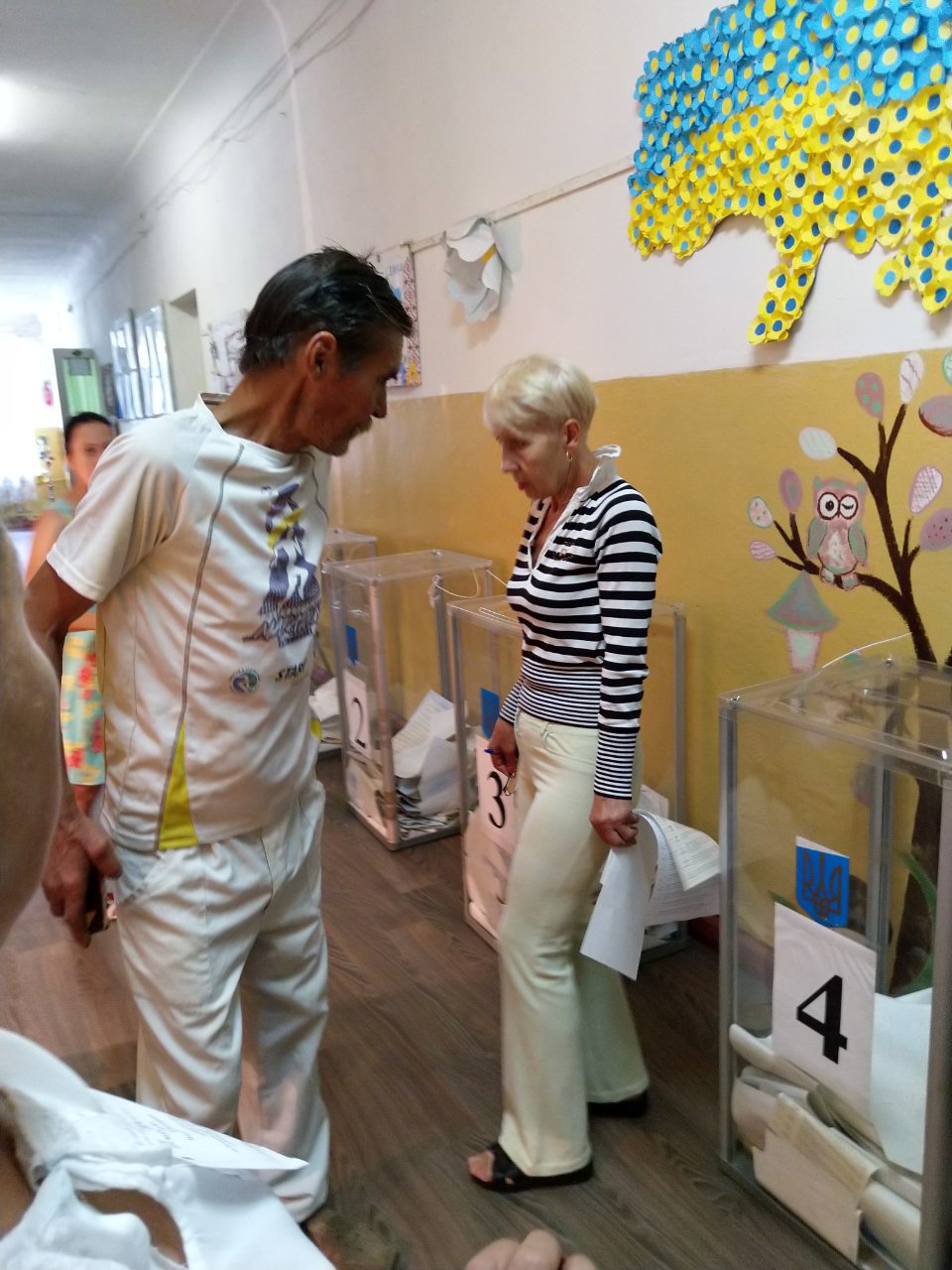 За словами спостерігача ОПОРИ, чоловік отримав бюлетені і підійшов поспілкуватися із знайомим спостерігачем, а потім вийшов із дільниці. Виборця наздогнали працівники поліції та члени ДВК. Чоловік під футболку заховав бюлетені. Згодом поліція відібрала пояснення і направила чоловіка в кабінку для голосування. Він вийшов зі зім’ятами бюлетнями і кинув їх в скриньку для голосування.
