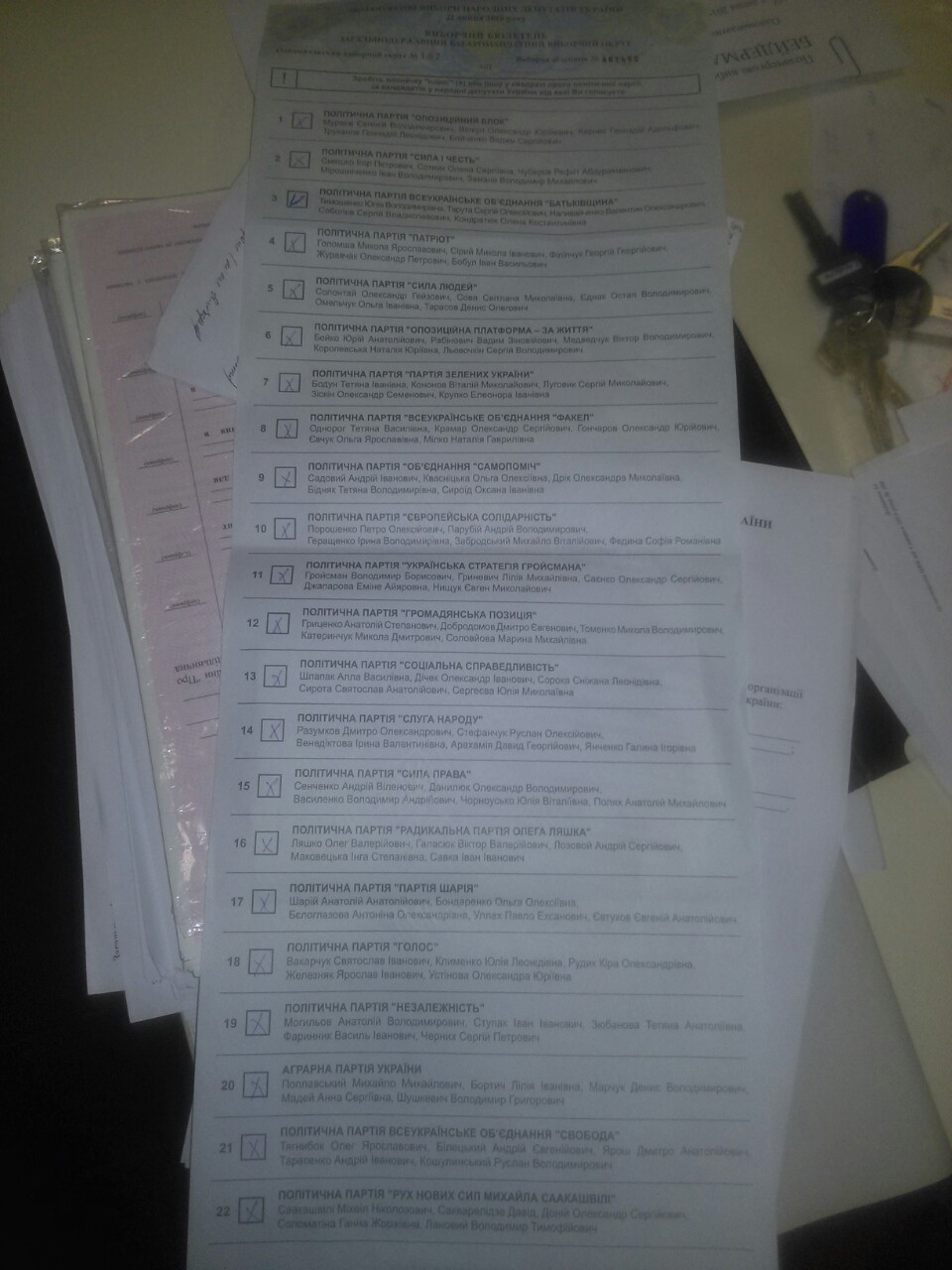 На виборчій дільниці у Хмельницькому визнали дійсним бюлетень із позначками в квадратах навпроти кожної з 22-х партій.