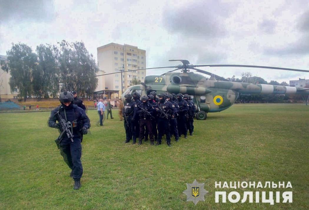 У місто Коростень Житомирської області прилетів вертоліт із спецпризначенцями, щоб охороняти правопорядок на окружній виборчій комісії та попередити можливі правопорушення.