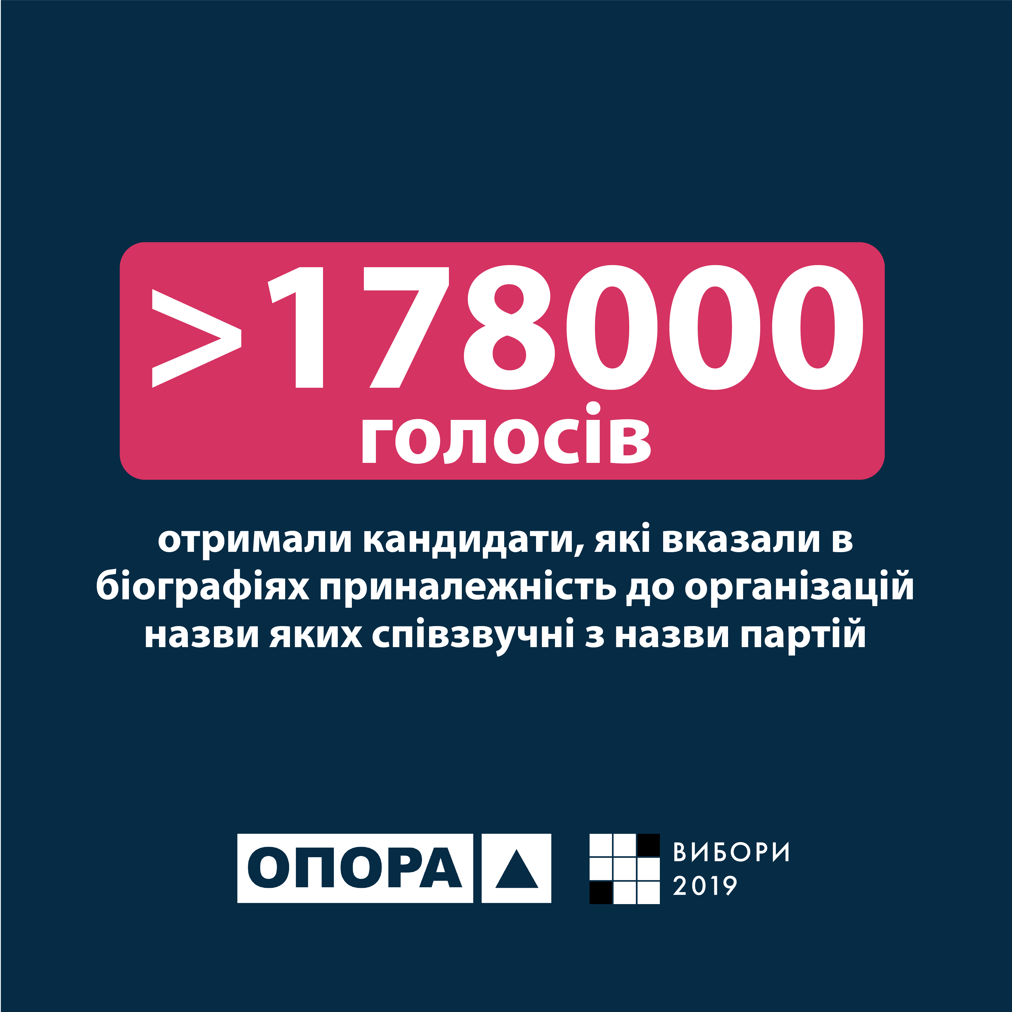 Натомість відносно ефективною виявилася інша технологія двійників, коли кандидати в своїх біографічних відомостях вказували про приналежність до організацій, назви яких дублювали назви політичних партій – суб’єктів виборчого процесу (від яких ці кандидати не балотуються). За підрахунками ОПОРИ, на цих виборах балотувалося понад 90 кандидатів (в 55-ти одномандатних виборчих округах), які, будучи самовисуванцями, видавали себе за представників приватного підприємства, громадської чи благодійної організації «Слуга народу» або (значно рідше) «Голосу». Національна поліція України порушила 34 справи щодо незаконного використання брендів партій за статтею 157 Кримінального кодексу України (перешкоджання вільному здійсненню громадянами свого виборчого права).