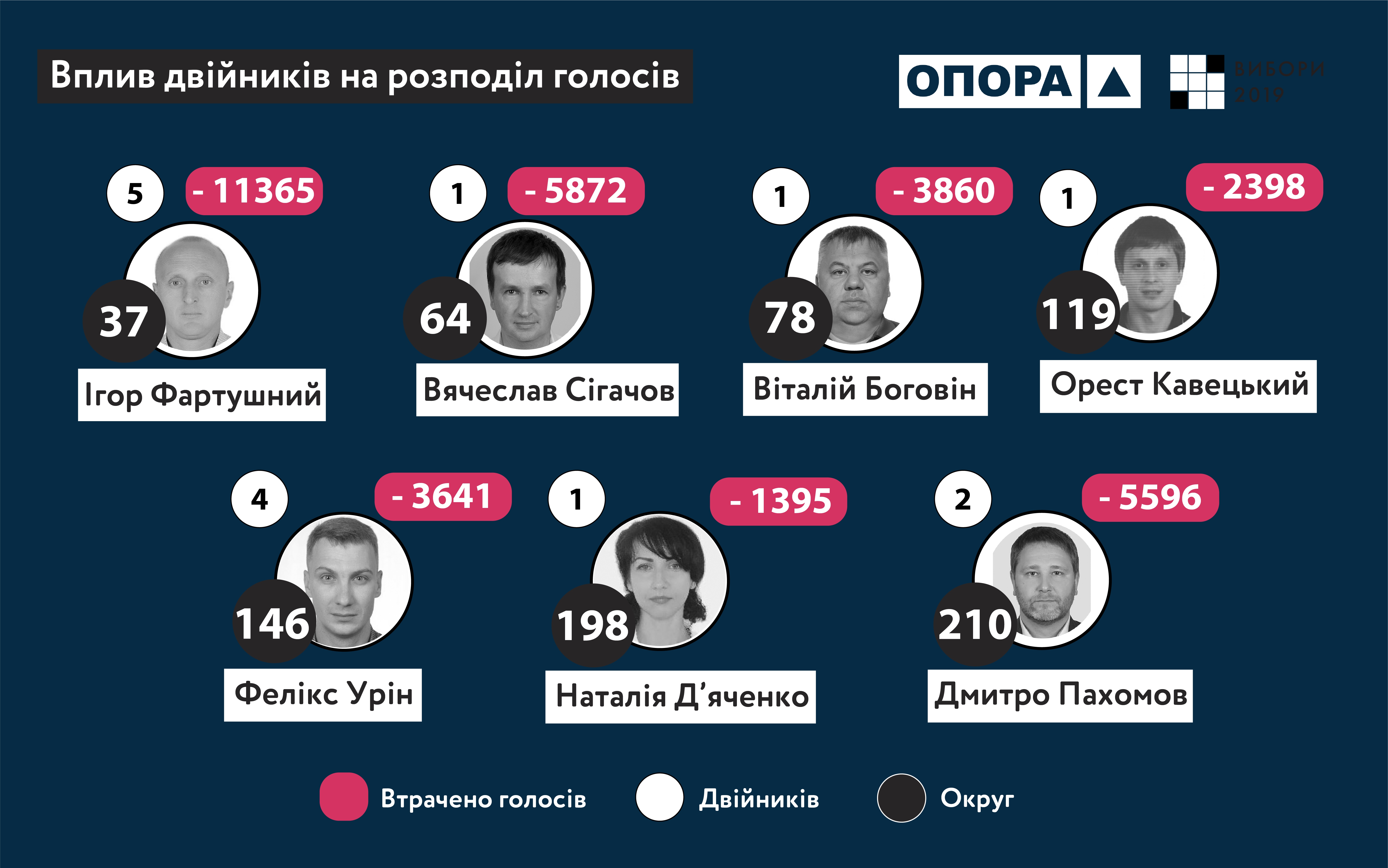 Вплив кандидатів «двійників» на розподіл голосів у округах:
